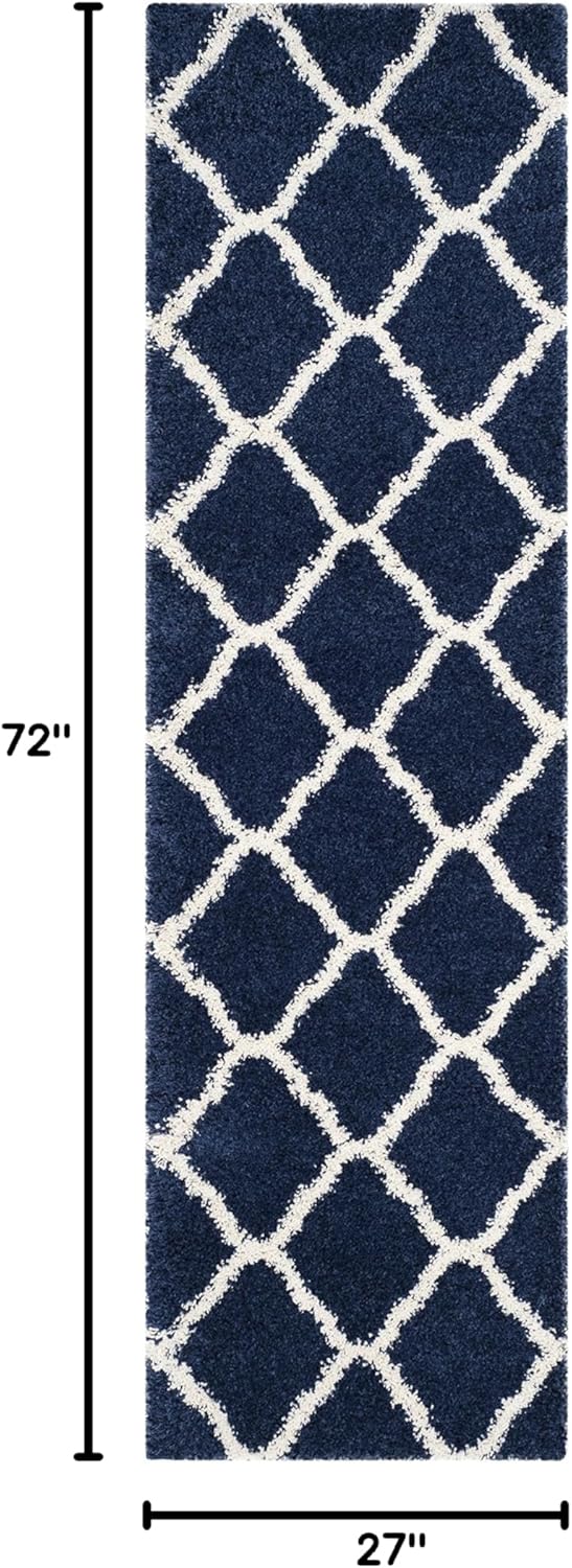 SAFAVIEH Hudson Shag Collection Runner Rug – 2’3″ x 6′, Navy & Ivory, Moroccan Trellis Design, Non-Shedding & Easy Care, 2-inch Thick Ideal for High Traffic Areas in Living Room, Bedroom (SGH283C)