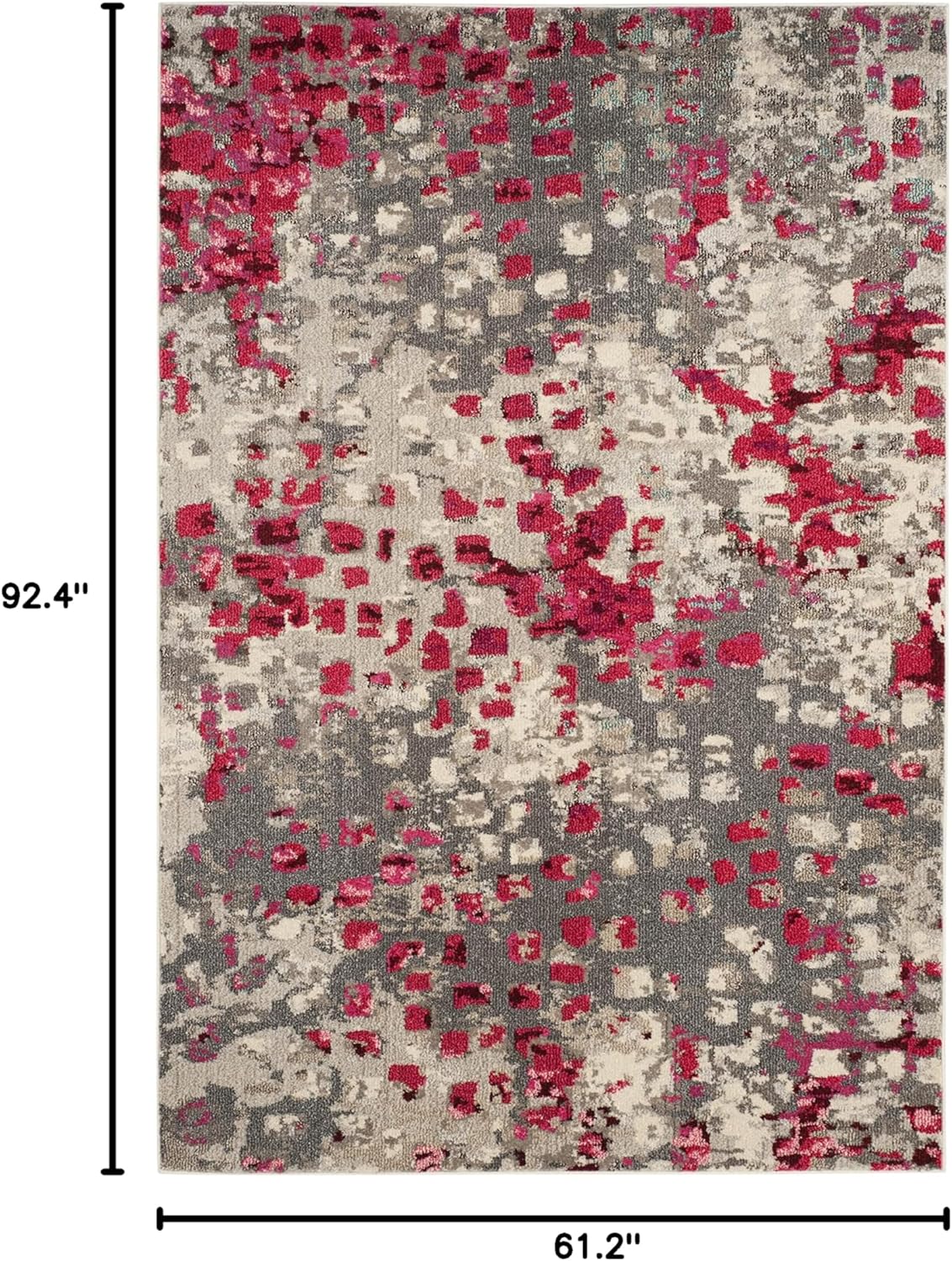 SAFAVIEH Monaco Collection Area Rug – 5’1″ x 7’7″, Grey & Fuchsia, Boho Chic Abstract Watercolor Design, Non-Shedding & Easy Care, Ideal for High Traffic Areas in Living Room, Bedroom (MNC225R)