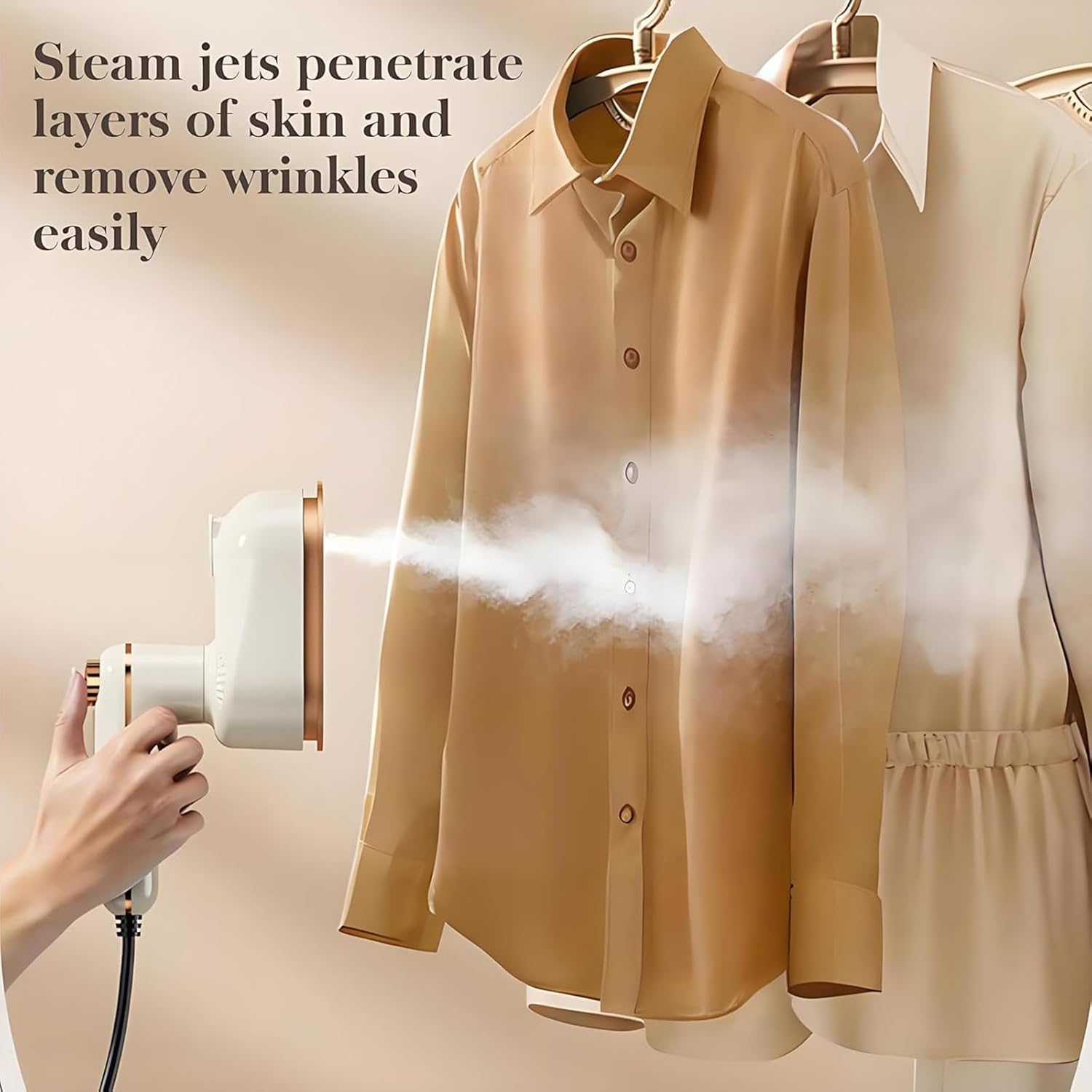 【2-in-1 Mini Steamer & Iron Design 】–Combines the convenience of a steamer and the precision of a flat iron in one compact device—perfect for quick touch-ups or detailed ironing, whether hung or laid flat