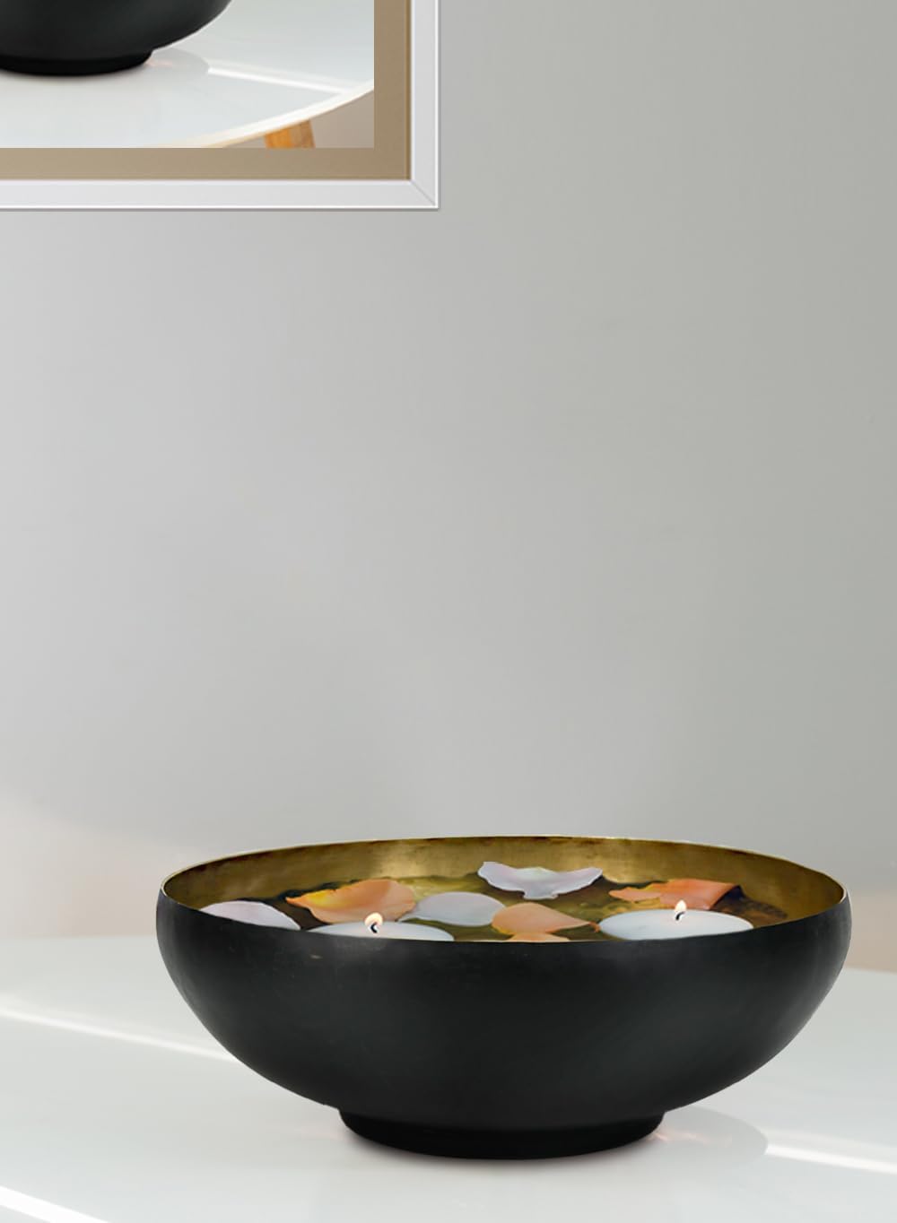 Serene Spaces Living Dual-Tone Black & Gold Aluminum Bowl with Brass Look, Elegant Décor for Fruit Display, Centerpiece, Modern Accent for Home & Events