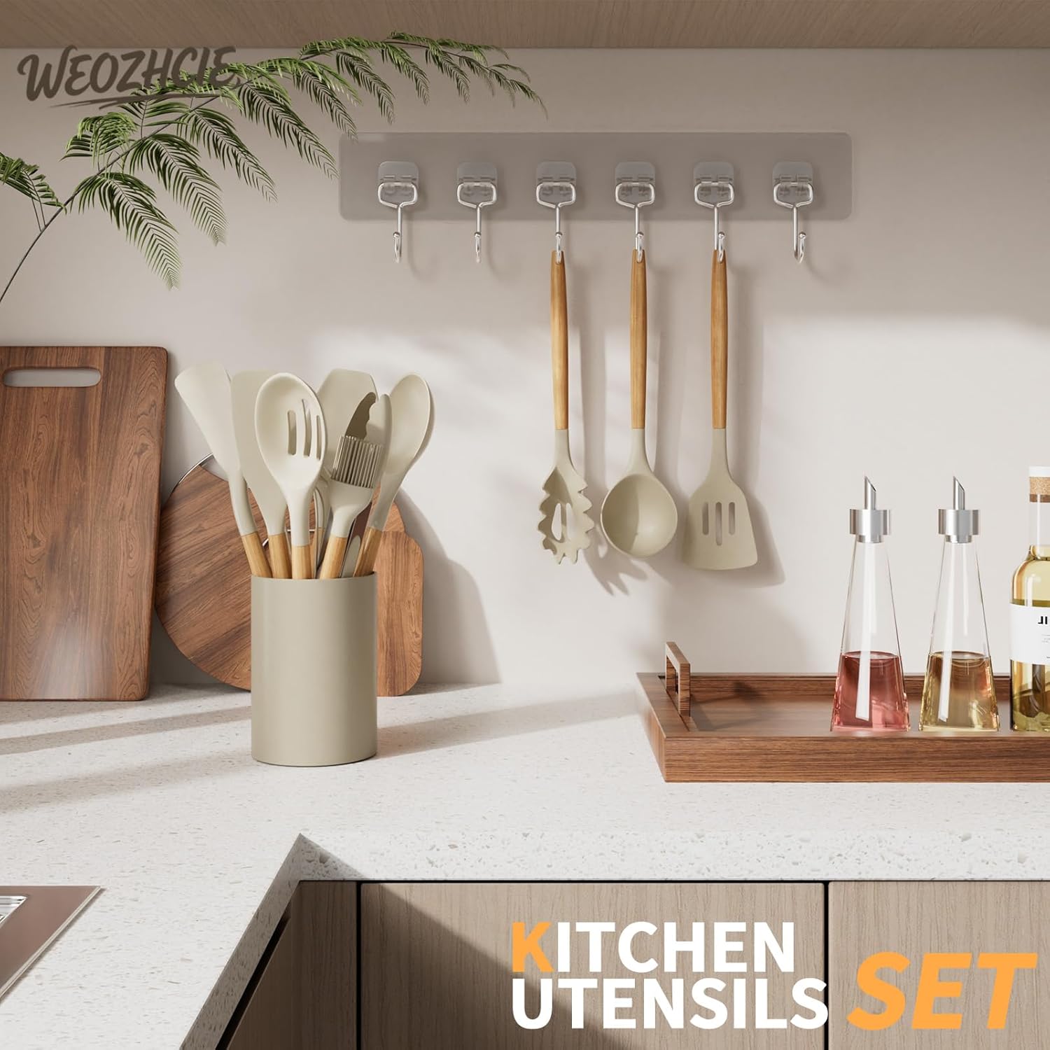 【12-Piece Kitchen Utensil Set】This silicone kitchen utensils set includes: 1 Ladle, 1 Pasta Fork, 1 Spoonula, 1 Slotted Spoon, 1 Kitchen Tong, 1 Slotted Turner, 1 Whisk, 1 Brush, 1 Large Spatula, and 1 Spoon