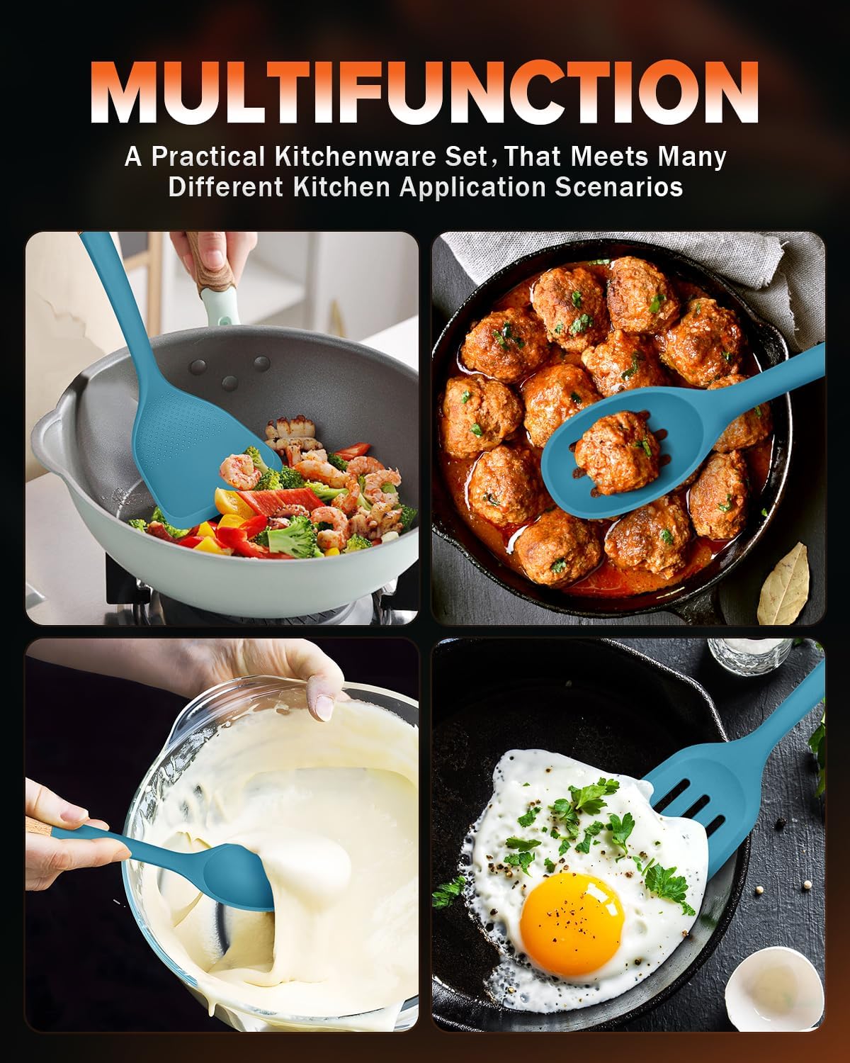Gentle on cookware: With smooth edges, our silicone Cooking Utensils protects non-stick cookware from scratches and damage