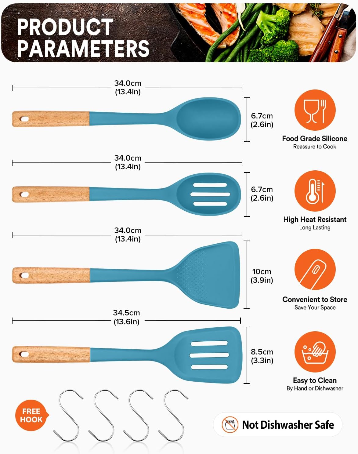 Versatile Tools: Silicone turner for flipping/frying; large spoon for serving; slotted spoon drains liquids quickly