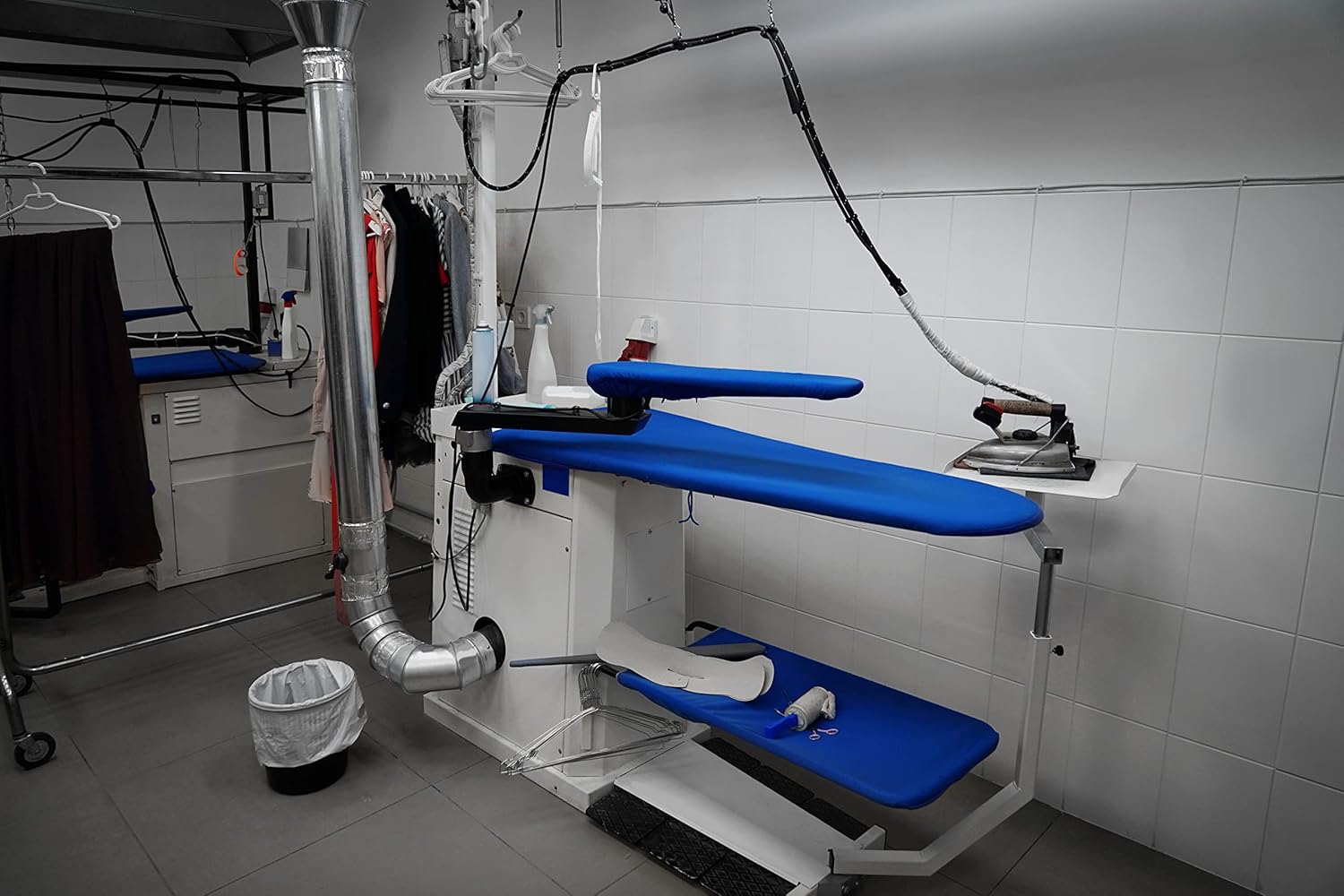 Unlike ordinary household steam irons, Industrial Gravity Feed Steam Irons (IGFSI) generate a whole lot of steam very quickly. When operating your iron, it’s important that you don’t hold the steam button down for an extended length; just a few seconds is all you need for a full burst of thick steam. Holding the button too long can cause the iron to build up way too much steam, which will result in sputtering, spitting, and often profuse leaking from under the sole plate. If you notice the iron start to sputter, spit, or leak, stop ironing, dry the iron thoroughly, then resume, but this time use the steam button more sparingly.