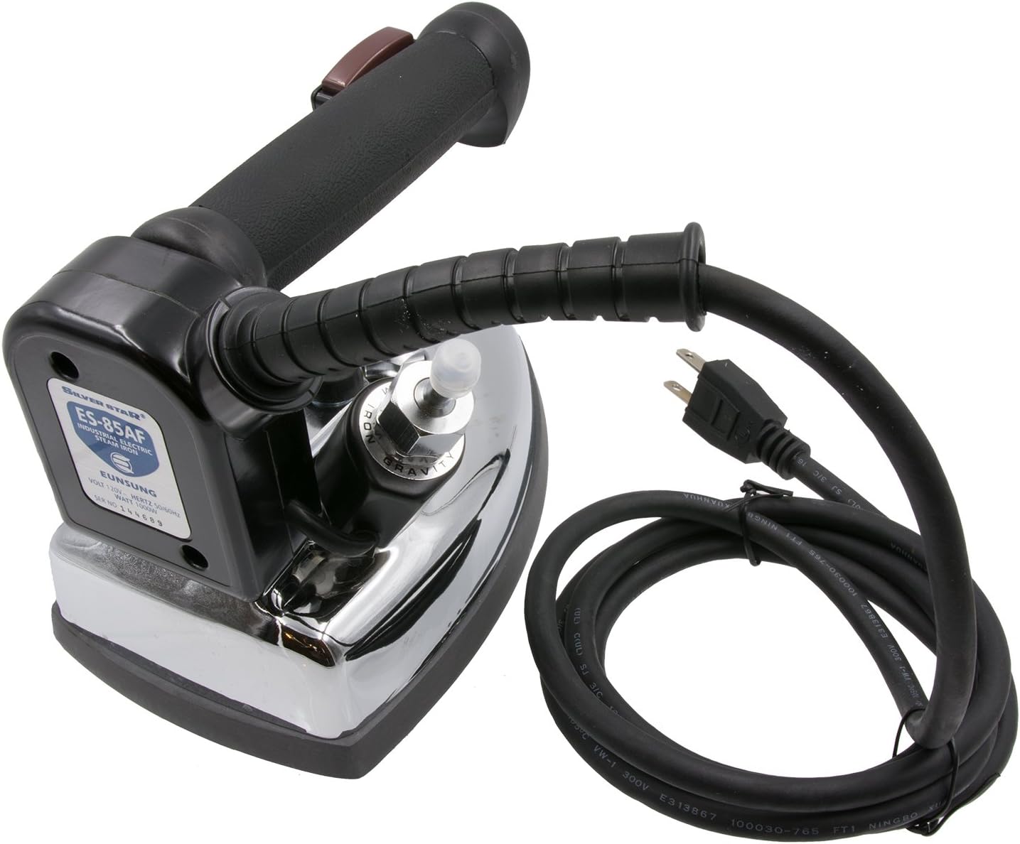 Silver Star ES-85AF industrial steam ironLaminate non-stick sole plate1 gallon plastic hanging water bottleInline demineralizer cartridgeSilicon-coated metal iron restHoses and all required hardwareDetailed instructions and parts manual