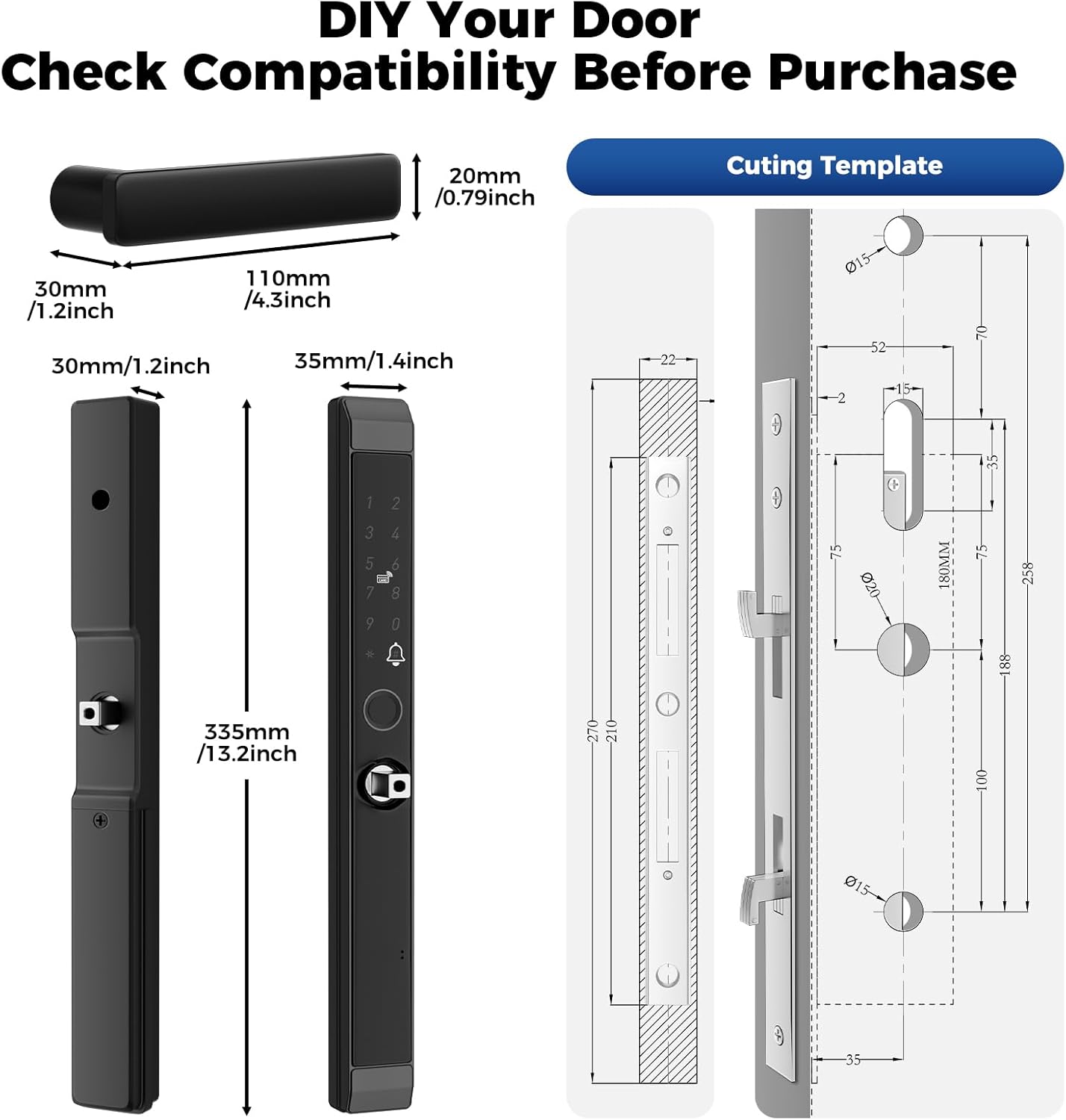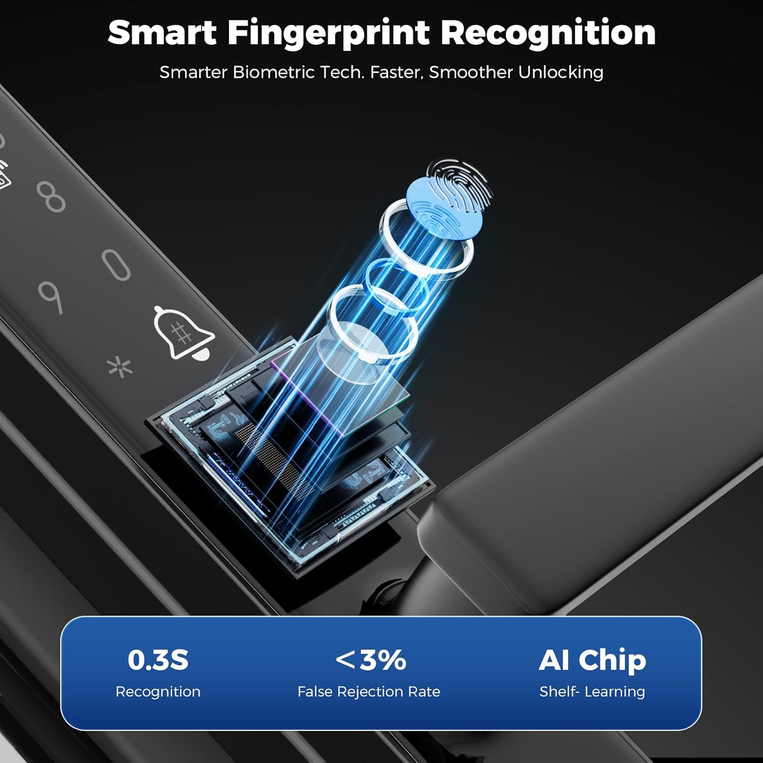 A Safer, Smarter Way to Unlock Your Door – Say goodbye to traditional keys and experience a new level of security and convenience. Unlike conventional locks, our smart sliding door lock features a powerful built-in security chip that effectively protects against hacking and tampering. With advanced touchscreen and fingerprint recognition technology, you can unlock your door in just three seconds—even with wet or dirty fingers. Step into the future of key-free living.