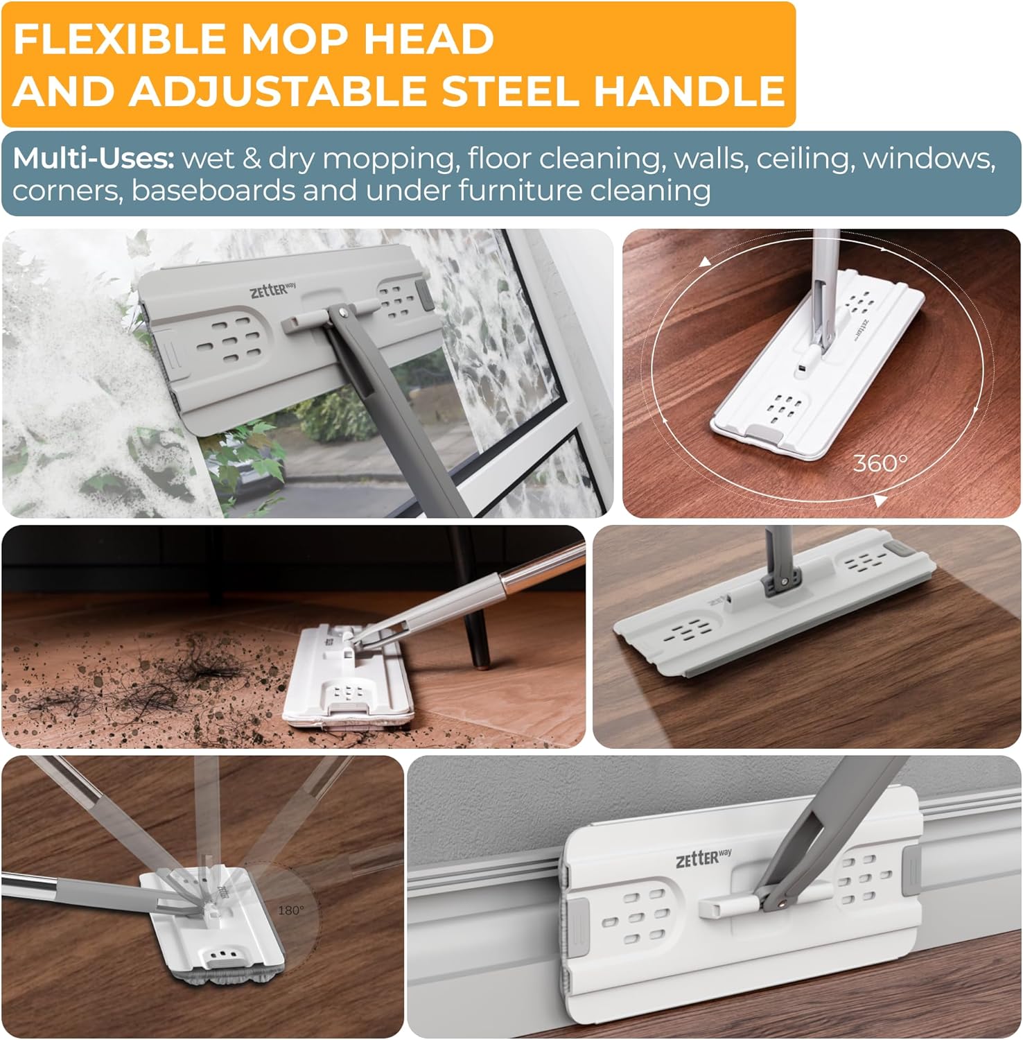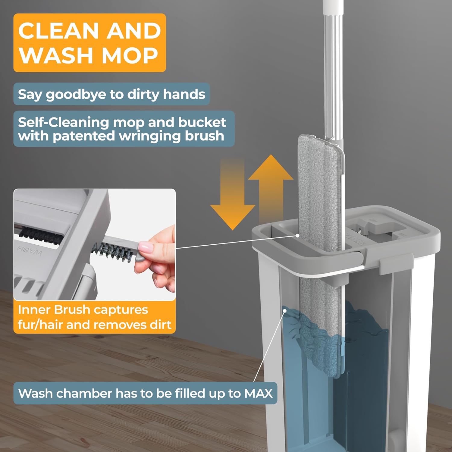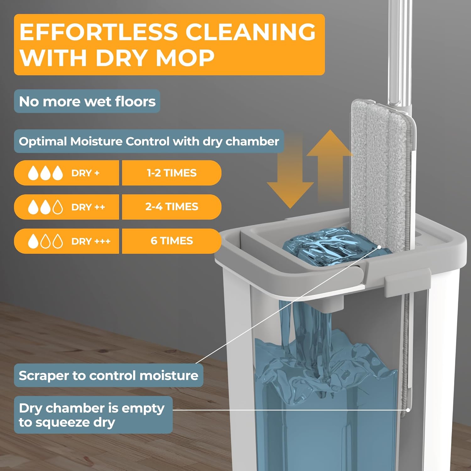 Easy to Use Flat Mop Bucket System with Wringer: Enjoy hands-free, mess-free mopping! Our built-in wringer ensures quick drying and hassle-free cleaning, while its versatile design supports both wet and dry mopping for daily use.