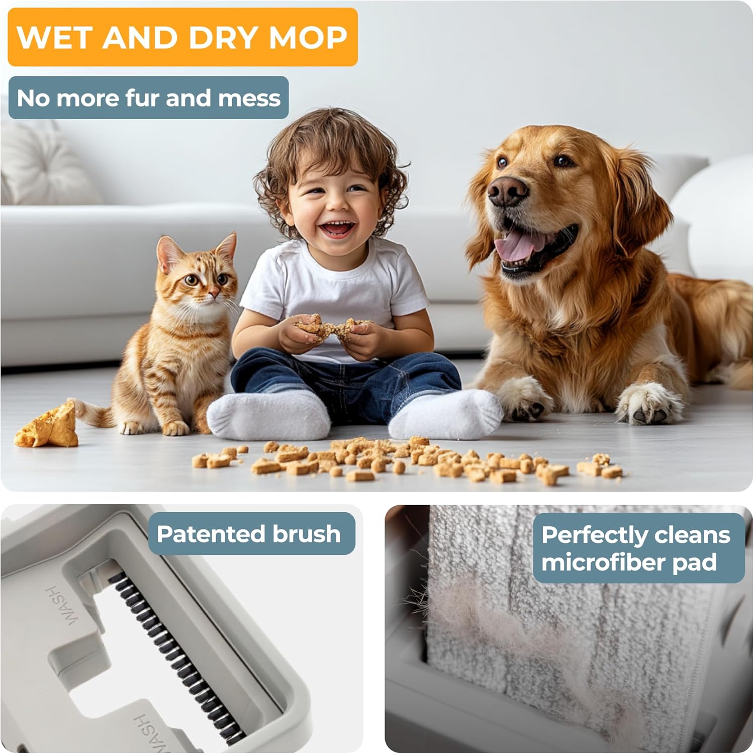 Mop and Bucket set is Pet Owners’ Dream Solution: Say goodbye to pet hair and dust! Our patented brush collects fur and debris directly from the microfiber inside the bucket making it crystal clear. Keep your home clean, even during heavy shedding seasons.