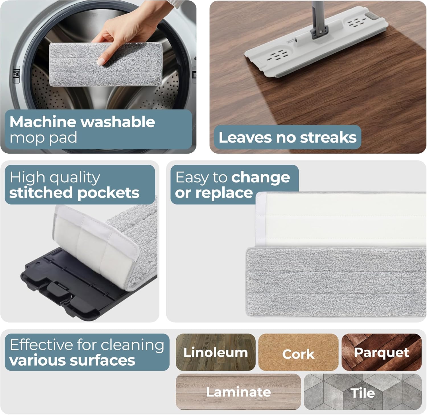 Highly Absorbent, Reusable Microfiber Pads: Enjoy eco-friendly cleaning with reusable microfiber pads designed for both wet and dry cleaning. These ultra- absorbent pads pick up dirt, grime, and moisture, and they’re machine- washable for long-term use.