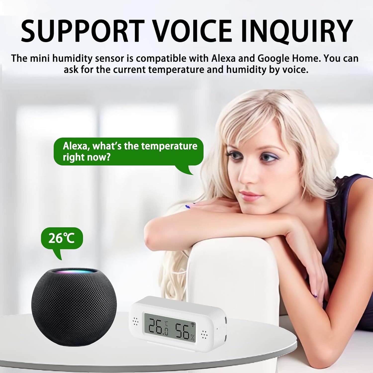 【Compatible with Alexa】The smart temperature and humidity detector can be used with Alexa. You can get the exact temperature and humidity data through your voice. Note: The temperature data is not displayed in the Alexa app.