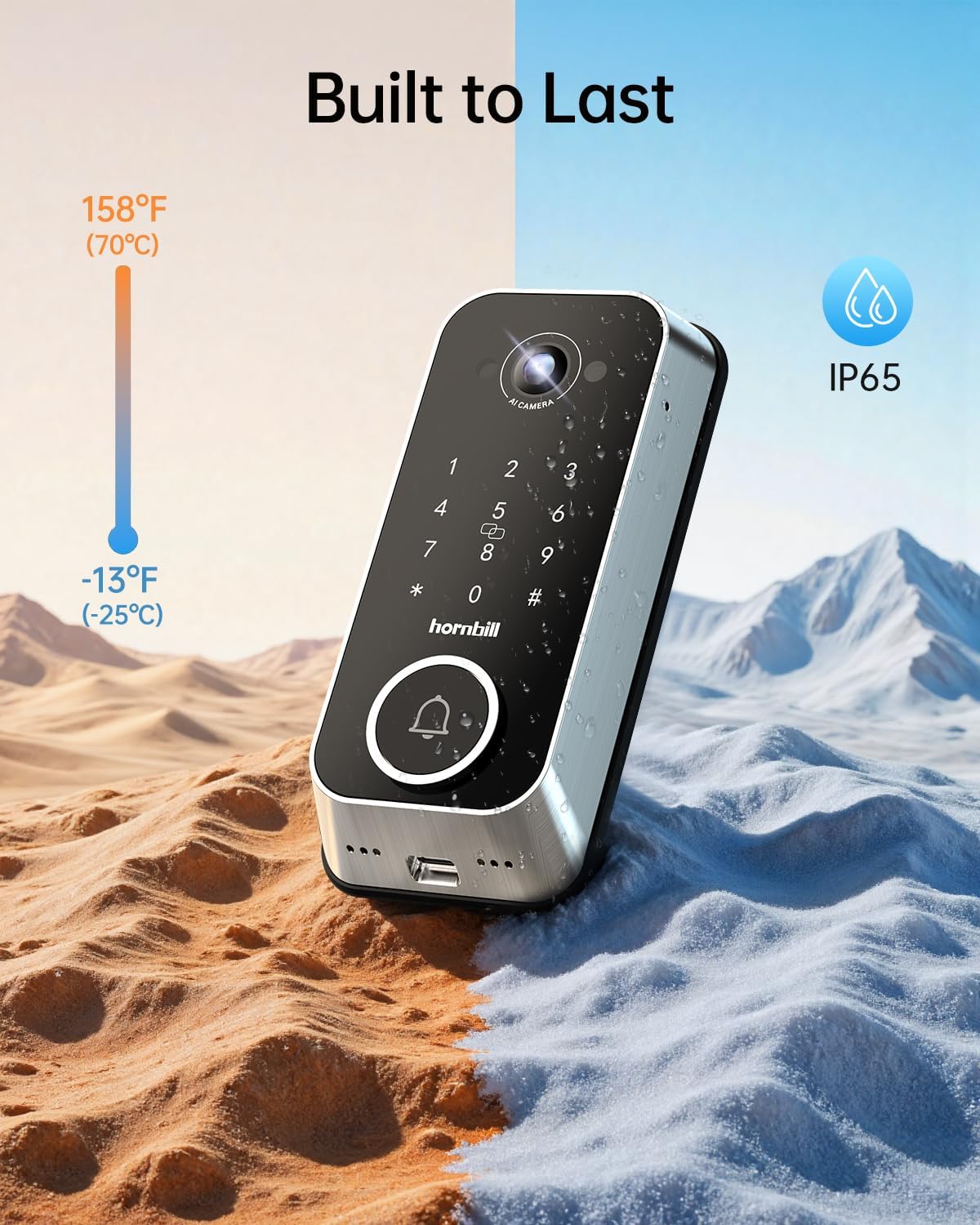 𝐒𝐦𝐚𝐫𝐭 𝐀𝐥𝐞𝐫𝐭𝐬 & 𝐑𝐞𝐦𝐨𝐭𝐞 𝐌𝐚𝐧𝐚𝐠𝐞𝐦𝐞𝐧𝐭:Visitors pressing keypad doorbell alert admins via app. Live ring video chats let you decide to unlock or deny entry. Timely alerts and remote control keep your home security in check.