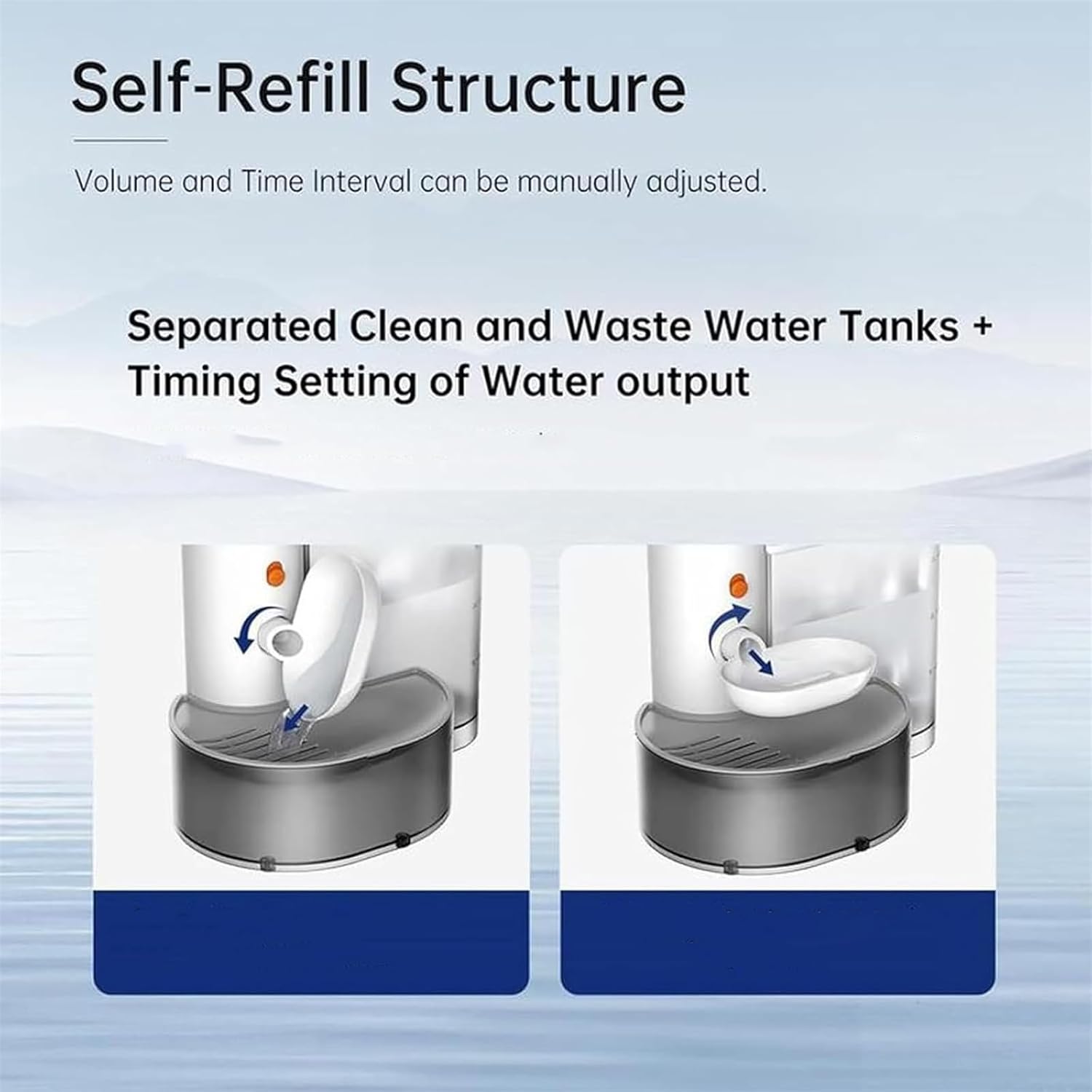 【Smart Pet Water Fountain】: The pet water fountain features a built-in system to regularly empty waste water, ensuring your pets always drink clean and fresh water. This innovative design helps maintain hygiene effortlessly