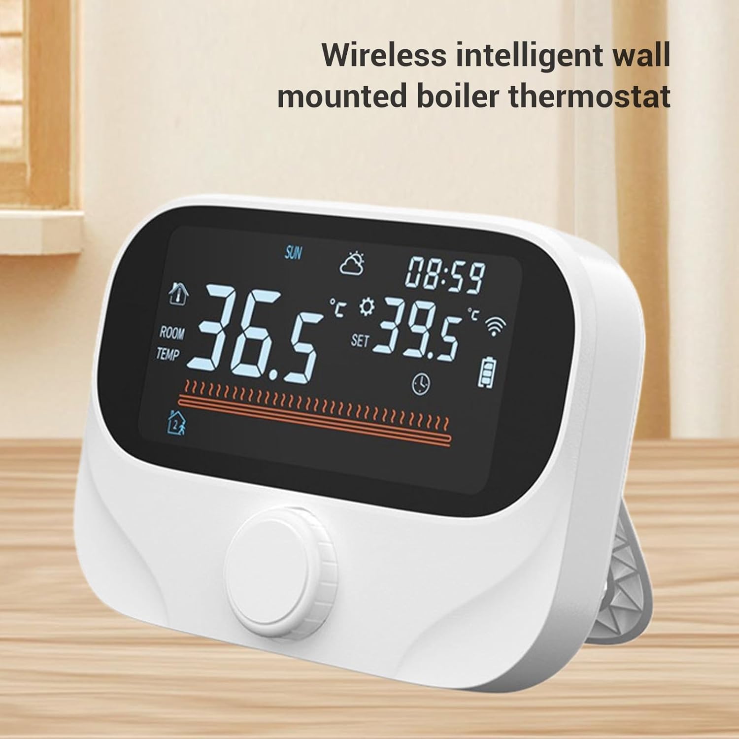 Smart WiFi & RF Remote Control: This smart boiler thermostat enables remote control via both WiFi and RF signals through the Tuya Smart app. You can customize heating schedules and adjust temperature settings from anywhere, ensuring home comfort and energy efficiency. The thermostat kit includes a receiver for seamless integration with compatible boiler systems.