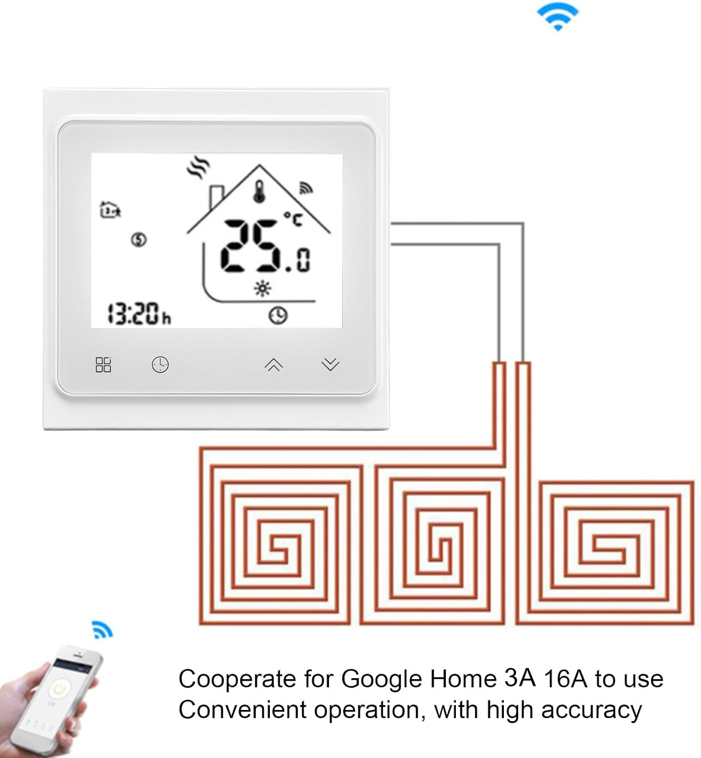 [EASY OPERATION & HOME COMPATIBLE] This smart thermostat seamlessly integrates with Home for effortless control. Designed for both 3A and 16A applications, it simplifies temperature management with intuitive operation. for busy households seeking convenience and smart home automation.