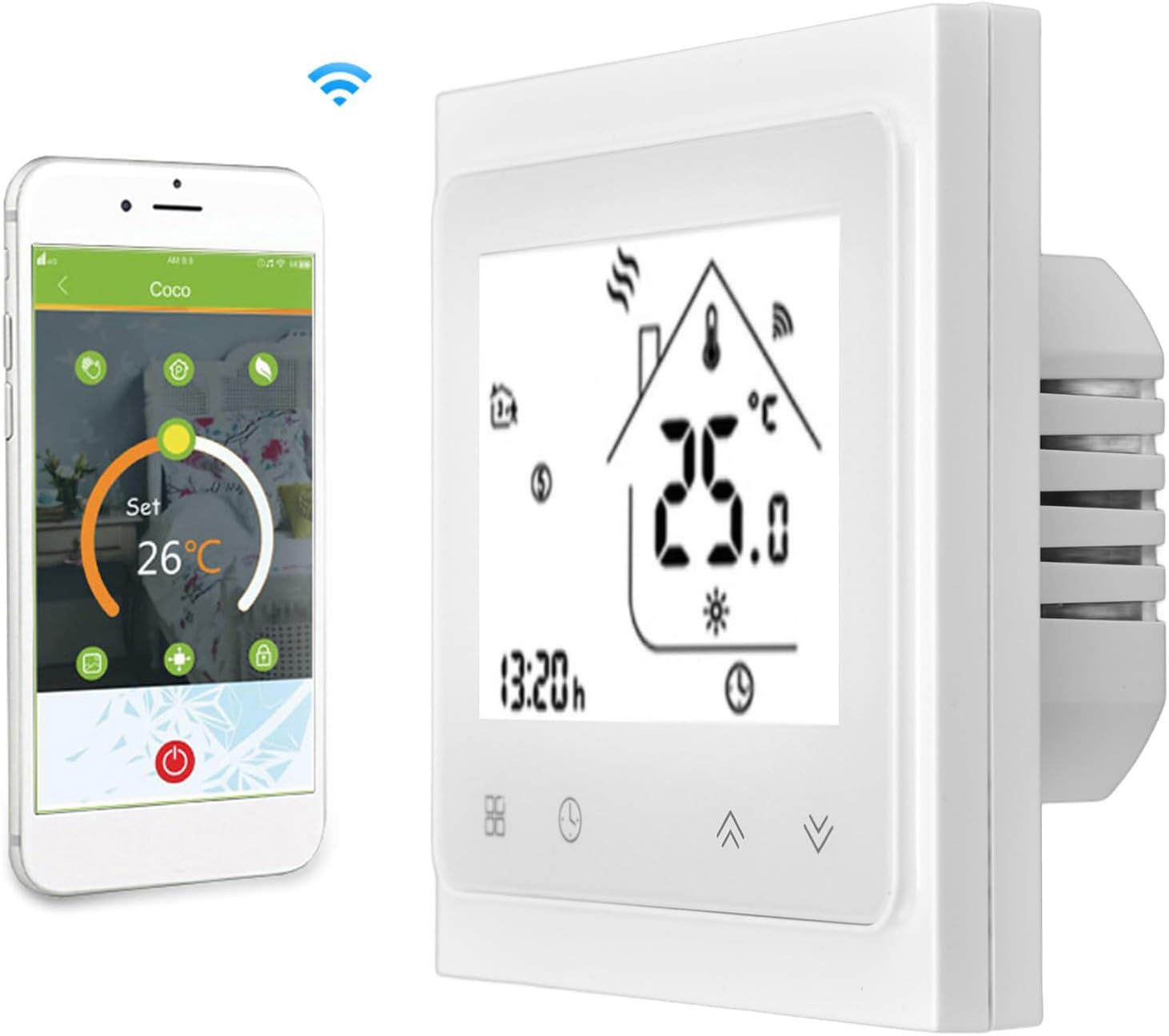 [VERSATILE HOME APPLIANCE CONTROL] Master your home’s comfort by controlling various appliances including water heaters, floor heating systems, and gas boilers. This multifunctional device adapts to diverse heating needs with customizable temperature ranges from 5-35℃.