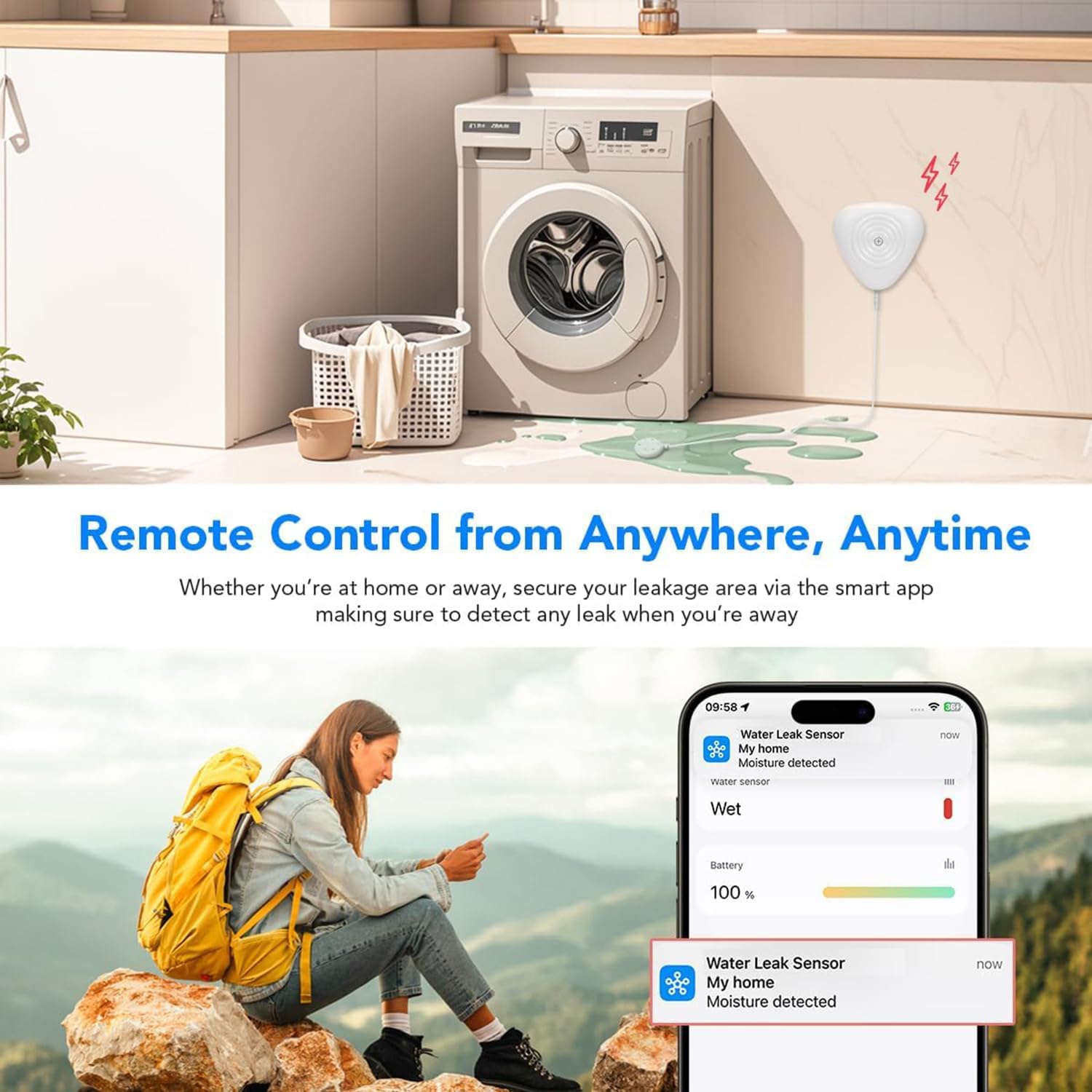 High-Sensitivity Probe with 1.2m Cable: Featuring a long 1.2m probe cable for flexible placement in hard-to-reach areas, this water leak sensor provides accurate detection. The raised bump design on the probe minimizes false alarms, making it reliable for various home environments