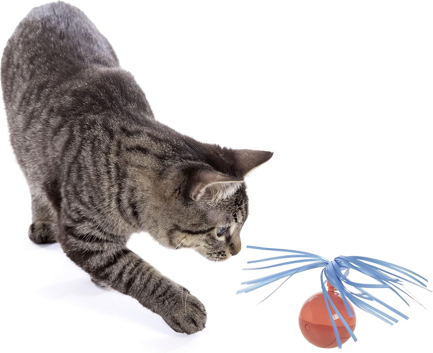 ELECTRONIC MOTION: The erratic spinning of the Twirly Top cat toy is sure to drive your kitty crazy; the unpredictable twirling of the irresistible rustling ribbons and the wobbling motion of the ball base adds to the excitement of playtime