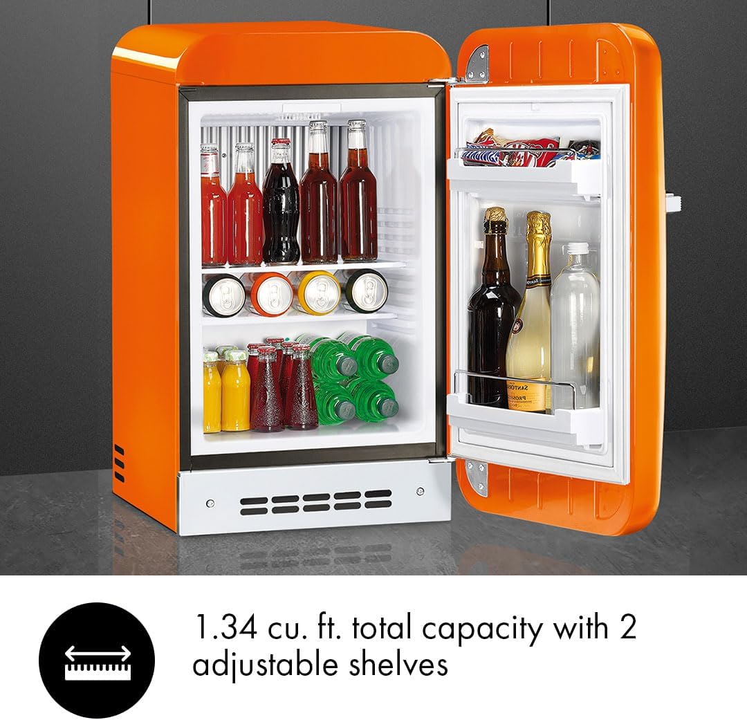 SMEG FABUROR3 FAB5 Retro Mini Fridge – 50s Style Compact Small Refrigerator, 1.2 cu ft, Automatic Defrost, LED Lighting, Adjustable Shelves– Made in Italy, Orange