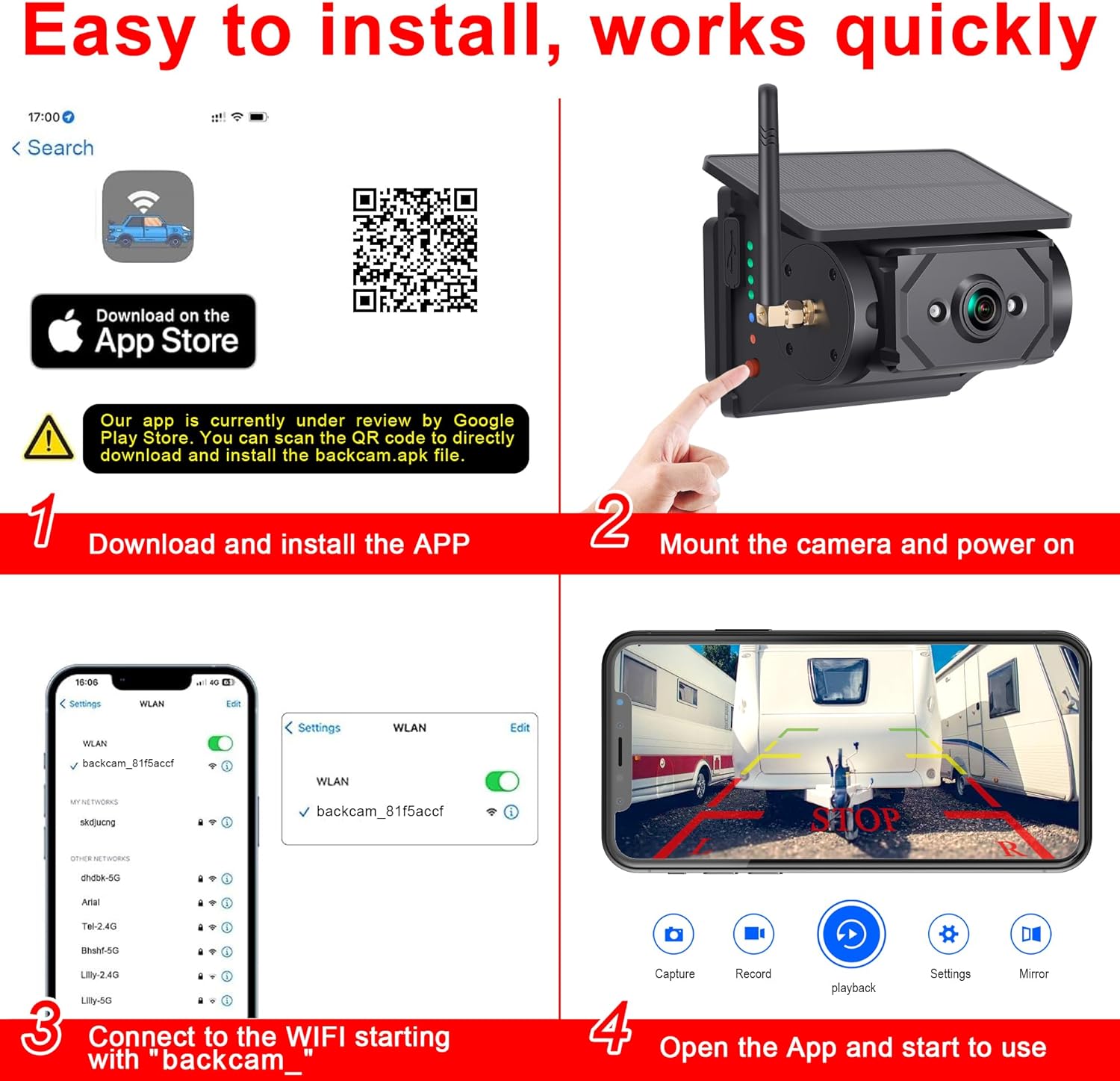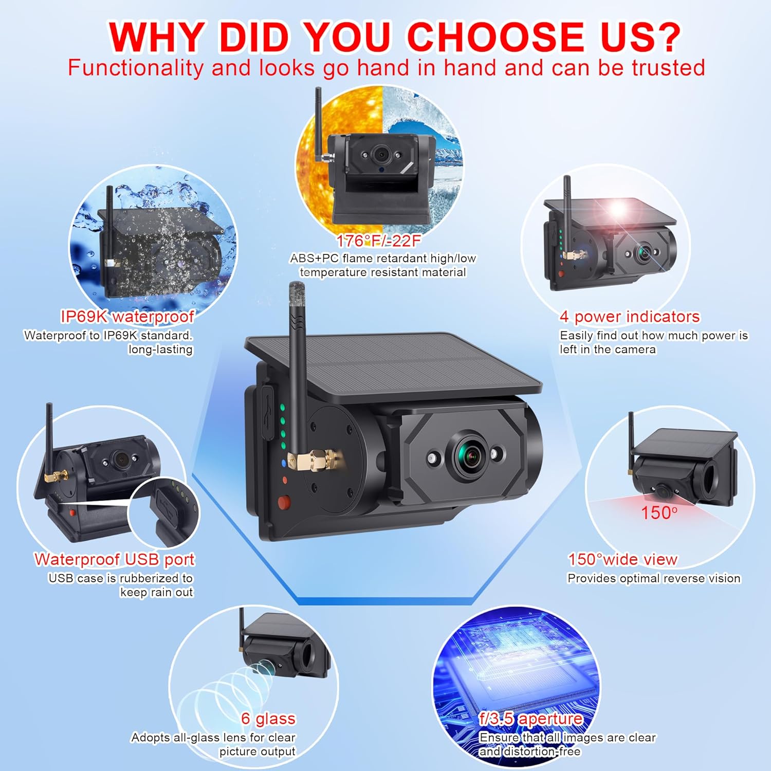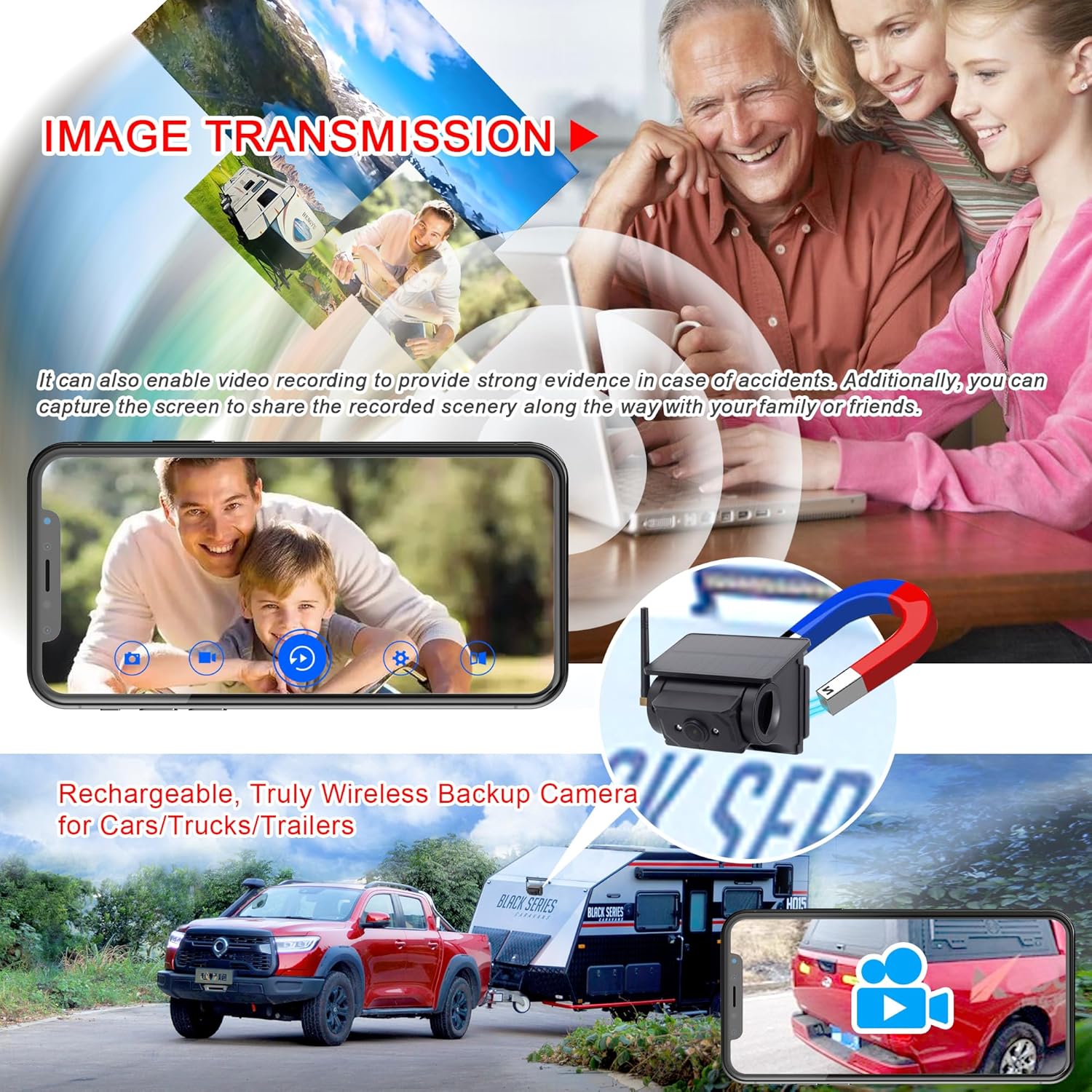 Multi-functional Wireless Solar Powered Backup Camera for Reversing and Travel