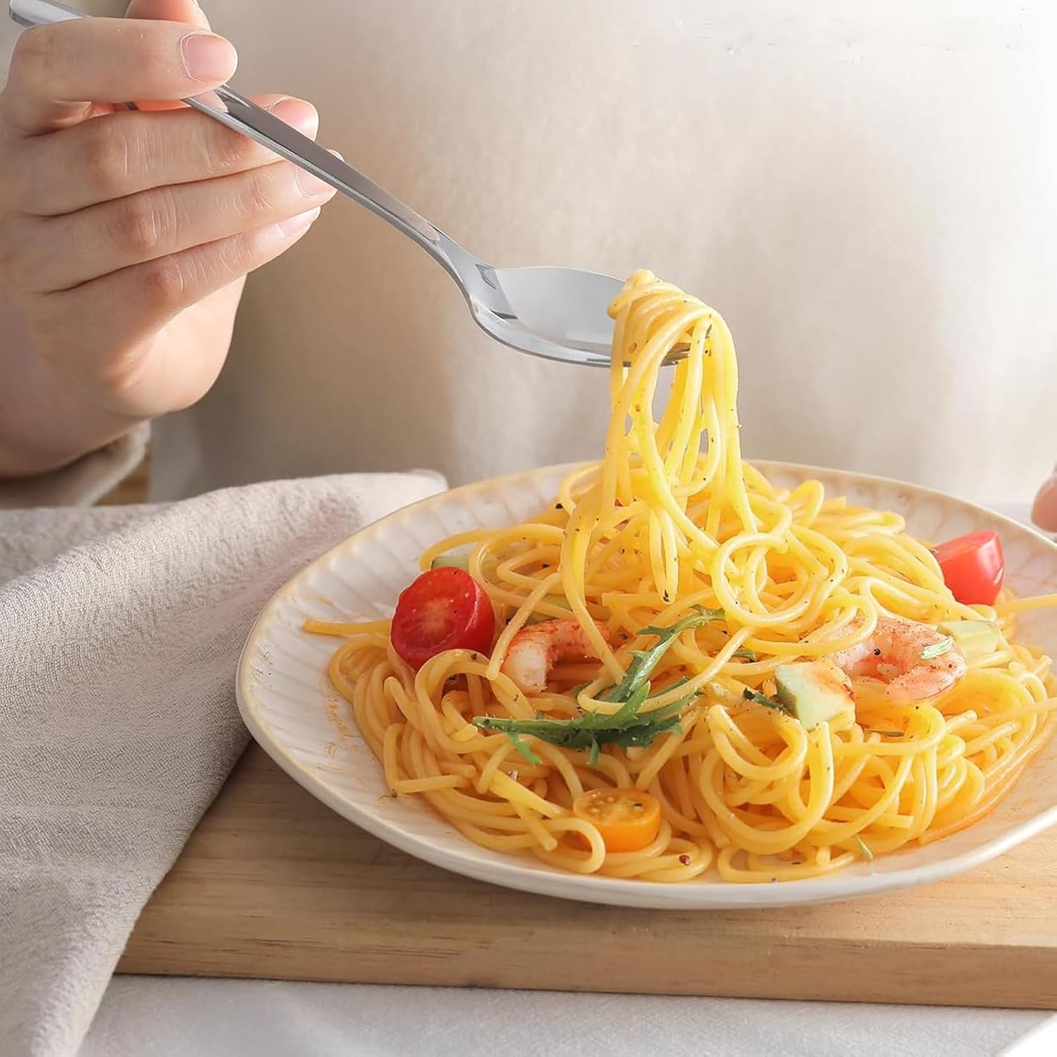 Good Quality & Well Made】The 2-in-1 sporks have better quality,sturdy and durable. This salad forks replace disposable cutlery. Heavy, sturdy, well-made, strong anti rust and anti corrosion.The metal sporks with a smooth and elegant surface, bright appearance, strong handle and good feel.