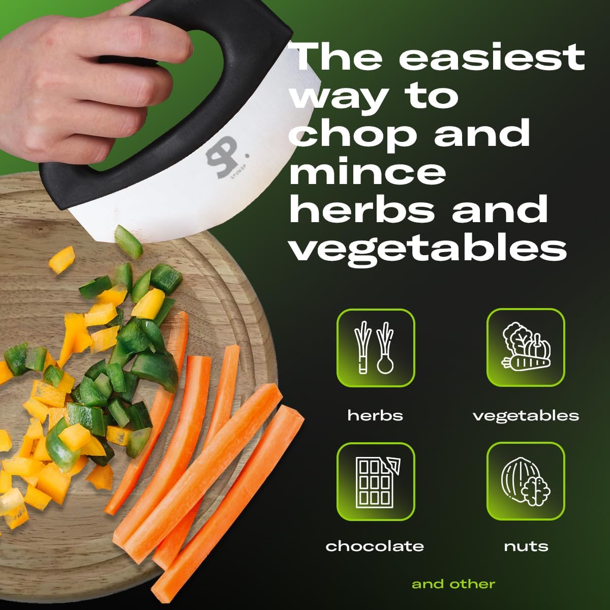 Versatile Kitchen Tool; Ideal for chopping leafy greens, herbs, garlic, nuts, and even slicing pizza—perfect for home chefs and professionals alike.