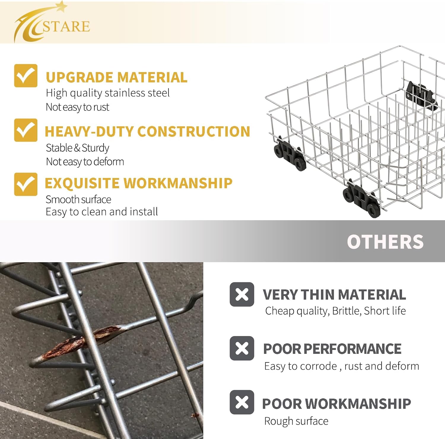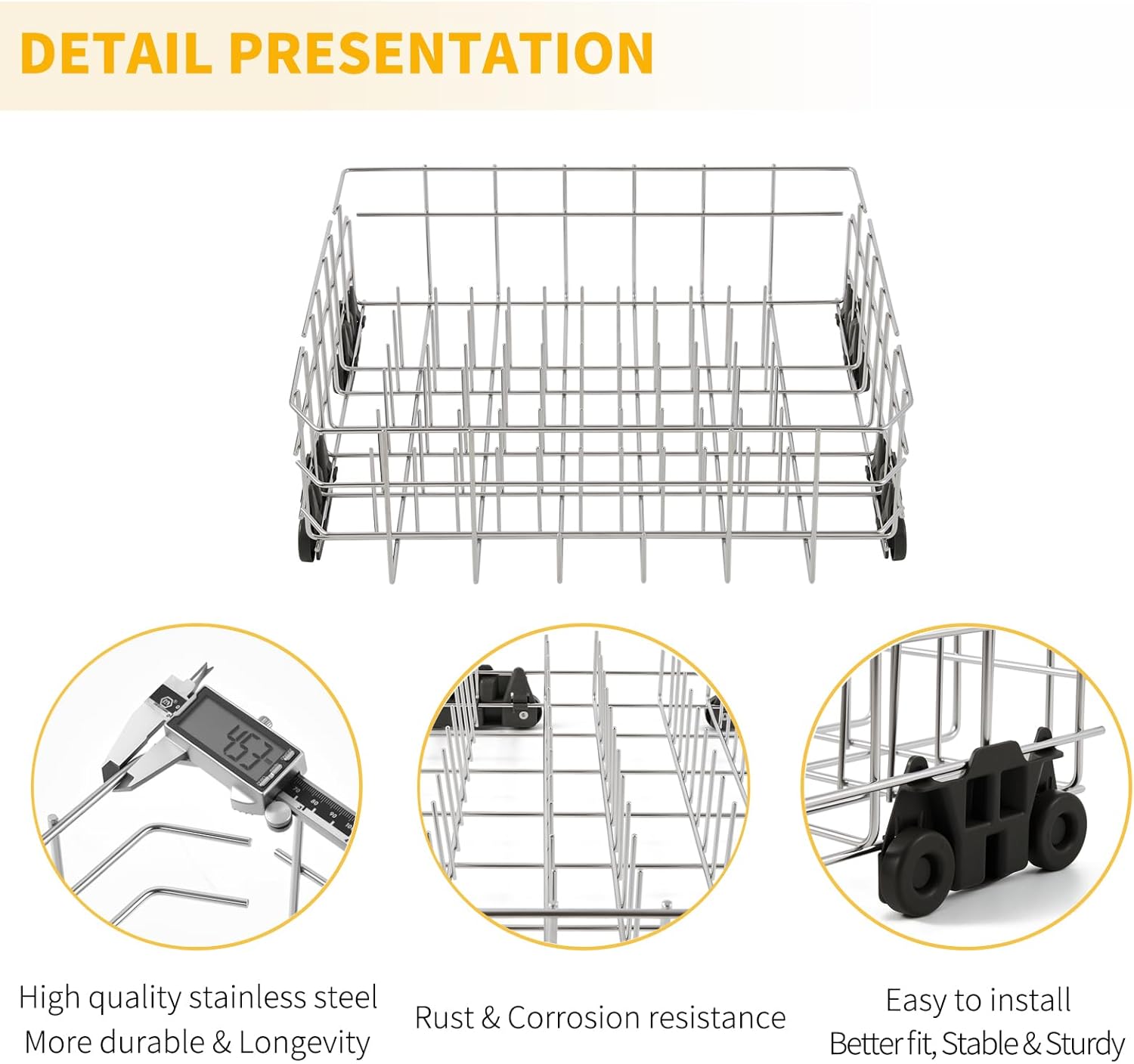 PACKAGE 22.3″L x 20.8″W x 7″H dishwasher rack replacement with 4 rollers. MATERIAL Made of upgraded stainless steel materials. REPLACEMENT OEM PARTS NUMBER Compatible with W10728159, W10525646, 8193785, 8268635, 8268638, 8268781, 8268788, 8268805, 8268806, 8519616, 8519646, 8519667, 8519668, 8519680, 8539257, W10056271, W10078180, W10082825, W10199765, W10312777, W10315890, W10525645, W10525651, W10889106, WP8519681, WPW10078180 and more. DISHWASHER TINE ROW PARTS W10728160, W10056272, W10082907, WP8519589, 3368621, 3368622, 3368627, 3368631, 3380620, 3387270, 8051257, 8268775, 8268776, 8274963, 8519648, 8519682, 9744552 and more. FITS WHIRLPOOL DISHWASHER WDT730PAHB0 WDT730PAHV0 WDT730PAHW0 WDT730PAHZ0 WDF330PAHS(0/1/2/3/4/5) WDT730HAMZ(0/1) WDT740SALB(0/1/2/3) WDT740SALW(0/1/2/3) WDT740SALZ(0/1/2/3) WDT750SAKB(0/1/2/3) WDT750SAKV(0/1/2/3) WDT750SAKW(0/1/2/3) WDT750SAKZ(0/1/2/3) WDT751SAPZ(0/1) WDTA50SAKB(0/1/2/3) WDTA50SAKT(0/1/2/3) WDTA50SAKV(0/1/2/3) WDTA50SAKW(0/1/2/3) WDTA50SAKZ(0/1/2/3) WDTA80SAKZ(0/1/2/3) FITS KITCHEN AID DISHWASHER KDTE104DBL0 KDTE104DBL1 KDTE104DSS0 KDTE104DSS1 KDTE104DWH0 KDTE104DWH1 KDTE104EBL0 KDTE104EBL1 KDTE104EBL2 KDTE104EBL3 KDTE104EBL4 KDTE104EBS1 KDTE104EBS2 KDTE104EBS3 KDTE104EBS4 KDTE104ESS0 KDTE104ESS1 KDTE104ESS2 KDTE104ESS3 KDTE104ESS4 KDTE104EWH(0/1/2/3/4) KDTE204DBL0 KDTE204DBL1 KDTE204DSS0 KDTE204DSS1 KDTE204DWH0 KDTE204DWH1 KDTE204EBL(0/1/2/3/4) KDTE204EPA(0/1/2/3/4) KDTE204ESS(0/1/2/3/4) KDTE204EWH(0/1/2/3/4) KDTE554CSS(0/1/3/4) KDTM404KBS0 KDTM404KPS0 FITS KITCHEN AID DISHWASHER KDFE104DBL0 KDFE104DBL1 KDFE104DBL2 KDFE104DBL3 KDFE104DBL4 KDFE104DBL5 KDFE104DSS0 KDFE104DSS1 KDFE104DSS2 KDFE104DSS3 KDFE104DSS4 KDFE104DSS5 KDFE104DWH0 KDFE104DWH1 KDFE104DWH2 KDFE104DWH3 KDFE104DWH4 KDFE104DWH5 KDFE204EBL0 KDFE204EBL1 KDFE204EBL2 KDFE204EBL3 KDFE204EBL4 KDFE204ESS0 KDFE204ESS1 KDFE204ESS2 KDFE204ESS3 KDFE204ESS4 KDFE204EWH0 KDFE204EWH1 KDFE204EWH2 KDFE204EWH3 KDFE204EWH4 KDFE454CSS0 KDFE454CSS1 KDFE454CSS2 KDFE454CSS3 KDFE454CSS4 KDFE454CSS5 KDFM404KBS0 KDFM404KPS0 FITS KITCHEN AID DISHWASHER KUDC10IXBL(0/1/2/3/4/6/7/8/9) KUDC10IXSS(0/1/2/3/4/6/7/8/9) KUDC10IXWH(0/1/2/3/4/6/7/8/9) KUDC20CVBL(0/2/3/4/5) KUDC20CVSS(0/2/3/4/5) KUDC20CVWH(0/2/3/4/5) KUDC20FVBL(0/2/3/4) KUDC20FVSS(0/2/3/4) KUDC20FVWH(0/2/3/4) KUDE03FTBL1 KUDE03FTSS1 KUDE03FTWH1 KUDE20FBBL(0/1) KUDE20FBSS(0/1) KUDE20FBWH(0/1) KUDE20FXBL(0/1/2/3/4) KUDE20FXSS(0/1/2/3/4) KUDE20IXBL(0/1/2/3/4/6/8/9) KUDE20IXSS(0/1/2/3/4/6/8/9) KUDE20IXSSA KUDE20IXWH(0/1/2/3/4/6/8/9) KUDE40CVBL(0/1/2/3) KUDE40CVSS(0/1/2/3) KUDE40CVWH(0/1/2/3) FITS KITCHEN AID DISHWASHER KUDA03CTBL(0/1/2/3) KUDA03CTBS(0/1/2/3) KUDA03CTWH(0/1/2/3) KUDB03CTBL(0/1/2) KUDB03CTBS(0/1/2) KUDC01TMBL(0/1/6) KUDC01TMWH1 KUDC01TMWH6 KUDC01TMWHO KUDC03FVBL(3/4/5) KUDC03FVSS(0/2/3/4/5) KUDC03FVWH(3/4/5) KUDC03IVBL(0/1/2/3/4) KUDC03IVBS(0/1/2/3/4) KUDC03IVWH(0/1/2/3/4) KUDC10FBBL0 KUDC10FBSS0 KUDC10FBWH0 KUDC10FXBL(0/1/2/3/4/5/6/7) KUDC10FXSS(0/1/2/3/4/5/6/7) KUDC10FXWH(0/1/2/3/4/5/6/7) KUDC10IBBL0 KUDC10IBSS0 KUDC10IBWH0 FITS KITCHEN AID DISHWASHER KUDI01ILLC0 KUDI01ILBL(0/1/2/3/4/5/6) KUDI01ILBS(0/1/2/3/4/5/6) KUDI01ILBT(0/1/2/3/4/5/6) KUDI01ILWH(0/1/2/3/4/5/6) KUDI01TJBL(0/1) KUDI01TJBT(0/1) KUDI01TJWH(0/1) KUDJ01TJBL(0/1) KUDJ01TJBT(0/1) KUDJ01TJWH(0/1) KUDK01ILBS(0/1/2/3/5/6) KUDK01TKBL(0/1) KUDK01TKBS(0/1) KUDK01TKBT(0/1) KUDK01TKWH(0/1) KUDK03CTBL(0/1/2/3) KUDK03CTSS(0/1/2/3) KUDK03CTWH(0/1/2/3) KUDK03FTBL(0/1/2/3) KUDK03FTSS(0/1/2/3) KUDK03FTWH(0/1/2/3) KUDK03ITBL(0/1/2/3) KUDK03ITBS(0/1/2/3) KUDK03ITBT(0/1/2/3) KUDK03ITWH(0/1/2/3) FITS KITCHEN AID DISHWASHER KUDK30IVBS4 KUDK30IVSS4 KUDL01ILBS(0/1/2/3/5/6) KUDL01TKBL0 KUDL01TKBT0 KUDL01TKWH0 KUDL03FVSS(0/3/4) KUDL03ITSS(0/1/2/3) KUDL03IVBL(0/2/3/4) KUDL03IVWH(0/2/3/4) KUDL15FXBL(0/1/2/3/4/5/6) KUDL15FXSS(0/1/2/3/4/5/6/7) KUDL15FXWH(0/1/2/3/4/5/6/7) KUDL40CVBL(0/2/3/4) KUDL40CVSS(0/2/3/4) KUDL40CVWH(0/2/3/4) KUDM01FKBL(0/1) KUDM01FKBT(0/1) KUDM01FKSS(0/1) KUDM01FKWH(0/1) KUDM01TJBL(0/1) KUDM01TJBS(0/1) KUDM01TJBT(0/1) KUDM01TJWH(0/1) KUDM03FTBL(1/2/3) KUDM03FTSS(1/2/3) KUDM03FTWH(1/2/3) FITS KITCHEN AID DISHWASHER KUDE40FXBL(0/1/2/3/4/5/6) KUDE40FXBT(0/1/2/3/4/5/6) KUDE40FXPA(0/1/2/3/4/6) KUDE40FXSP(0/1/2/3/4/5) KUDE40FXSS(0/1/2/3/4/5/6) KUDE40FXWH(0/1/2/3/4/5/6) KUDE45CVBL(0/1/2/3) KUDE45CVSS(0/1/2/3) KUDE45CVWH(0/1/2/3) KUDE48FXBL(0/1/2/4/5/6) KUDE48FXPA(5/6) KUDE48FXSP(5/6) KUDE48FXSS(0/1/2/4/5/6) KUDE48FXWH(0/1/2/4/5/6) KUDE50CVSS3 KUDE50CXSS(0/1/2/4/6/8/9) KUDE50FBSS0 KUDE60FVBL(0/1/2/3) KUDE60FVPA(0/1/2/3/4) KUDE60FVSS(0/1/2/3) KUDE60FVWH(0/1/2/3) KUDE60FXBL(0/1/2/3/4/5) KUDE60FXPA(0/1/2/3) FITS KITCHEN AID DISHWASHER KUDE60FXLH0 KUDE60FXSS(0/1/2/3/4/5) KUDE60FXWH(0/1/2/3/4/5) KUDE60HXSS(0/1/2/3/4/5/6) KUDE60SXSS(0/1/2/3) KUDE70CVSS(0/1/2/3) KUDE70FVPA(0/1/2/3/4) KUDE70FVSS(0/1/2/3) KUDE70FXBL(5/6) KUDE70FXPA(0/1/2/3/5/6) KUDE70FXSS(0/1/2/3/4/5/6) KUDE70FXWH(5/6) KUDI01DLBL(0/1/2/3/6) KUDI01DLBS(0/1/2/3/6) KUDI01DLBT(0/1/2/3/6) KUDI01DLSS6 KUDI01DLWH(0/1/2/3/6) KUDI01FKBL(0/1) KUDI01FKSS(0/1) KUDI01FKWH(0/1) KUDI01FLBL(0/1/2/3/5/6) KUDI01FLBT(0/1/2/3/5/6) KUDI01FLSS(0/1/2/3/5/6) KUDI01FLWH(0/1/2/3/5/6) FITS KITCHEN AID DISHWASHER KUDS30CXBL(0/1/2/3/4/5/6/7) KUDS30CXSS(0/1/2/3/4/5/6/7) KUDS30CXWH(0/1/2/3/4/5/6/7) KUDS30FBBL(0/1) KUDS30FBSS(0/1) KUDS30FBWH(0/1) KUDS30FXBL(0/1/2/3/4/5/8/9) KUDS30FXBLA KUDS30FXPA(0/1/2/3/4/8/9) KUDS30FXPAA KUDS30FXSS(0/1/2/3/4/5/8/9) KUDS30FXSSA KUDS30FXWH(0/1/2/3/4/5/8/9) KUDS30FXWHA KUDS30HXSS0 KUDS30IBBL(0/1) KUDS30IBBT(0/1) KUDS30IBSS(0/1) KUDS30IBWH(0/1) KUDS30IVBL(0/2/3/4) KUDS30IVBS(0/2/3/4) KUDS30IVBT(0/2/3/4) FITS KITCHEN AID DISHWASHER KUDR02FSBL(1/2/3/4) KUDS35FXSSA KUDS01DJBL(0/1) KUDS01DJBT(0/1) KUDS01DJSB0 KUDS01DJSP(0/1) KUDS01DJSS(0/1) KUDS01DJSW0 KUDS01DJWH(0/1) KUDS01FKPA(0/1) KUDS01FKSS(0/1) KUDS01IJAL(0/1) KUDS01IJBL(0/1) KUDS01IJBS(0/1) KUDS01IJBT(0/1) KUDS01IJWH(0/1) KUDS03CTBL(0/1/2/3) KUDS03CTSS(0/1/2/3) KUDS03CTWH(0/1/2/3) KUDS03FTBL(0/1/2/3) KUDS03FTBT(0/1/2/3) KUDS03FTPA(0/1/2/3) KUDS03FTSS(0/1/2/3) KUDS03FTWH(