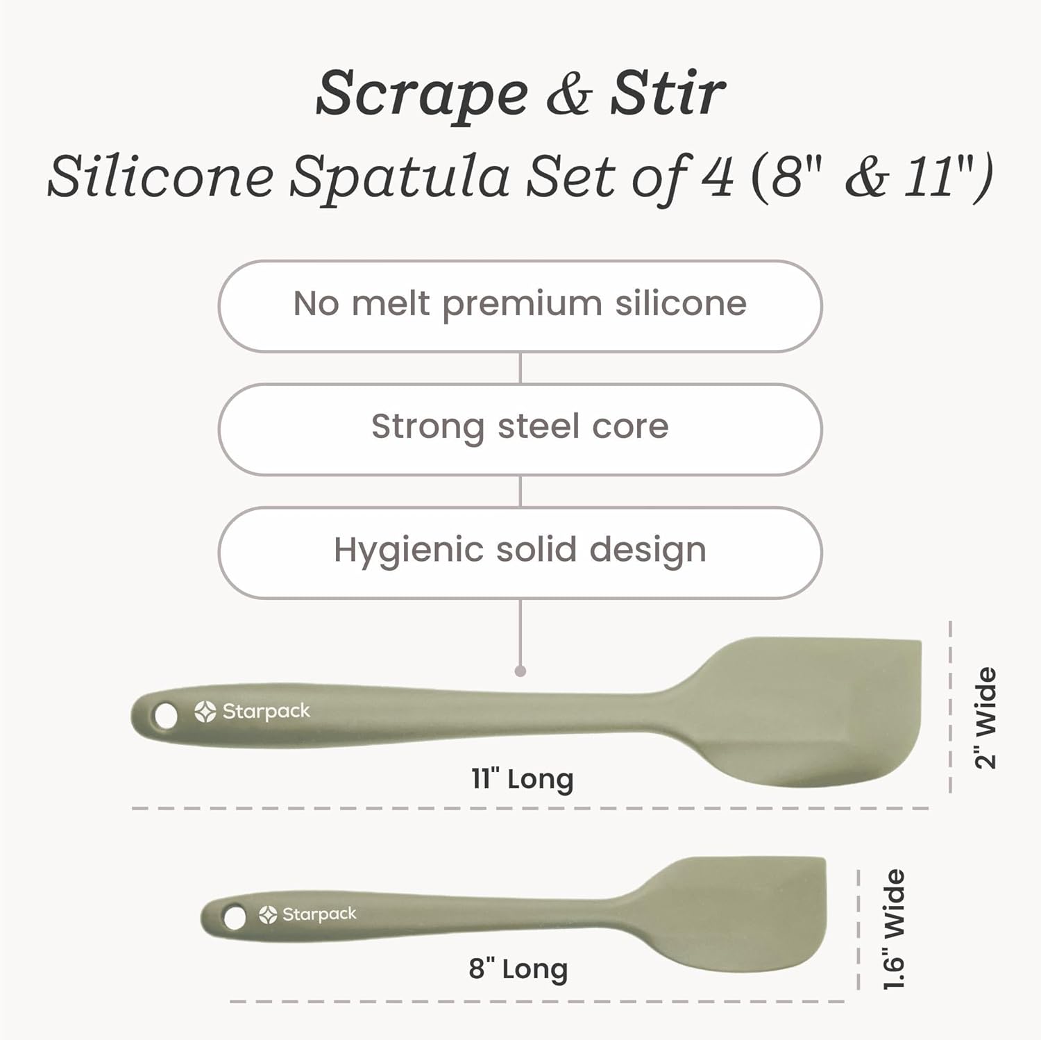 StarPack ‘Scrape & Stir’ Silicone Spatula Set (4 Pcs) – Heat Resistant Spatula Set 600°F – Food Grade Kitchen Spatulas – Nonstick Silicone Baking & Cooking Spatulas – Rubber Turner Set for Kitchen Use