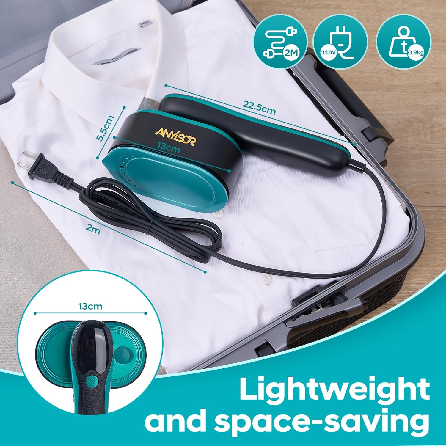 ANYLSOR 2-in-1 Steamer for Clothes – Handheld Clothes Steamer & Steam Iron for Home & Travel Upgrade your garment care routine with the ANYLSOR Steamer for Clothes, a powerful 2-in-1 clothes steamer and steam iron designed for home, office, and travel. With 1200W power and ultra-fast 10–15 second heat-up, this handheld clothes steamer delivers professional wrinkle removal in seconds, saving you time every day. Equipped with an intelligent digital display and 4 adjustable fabric settings, this clothes steamer handheld adapts to all garment types. Use dry ironing mode for delicate fabrics like silk and wool, or steam mode for cotton, linen, polyester, and everyday clothing. Whether you need a travel steamer for clothes or a reliable steam iron for clothes, ANYLSOR provides precise temperature control and fabric protection. The 90° rotatable head allows both horizontal ironing for shirts and pants and vertical steaming for dresses, jackets, suits, and curtains. Its large ceramic heating panel ensures smooth gliding and even heat distribution, while the leakage-proof design prevents water spills during use.