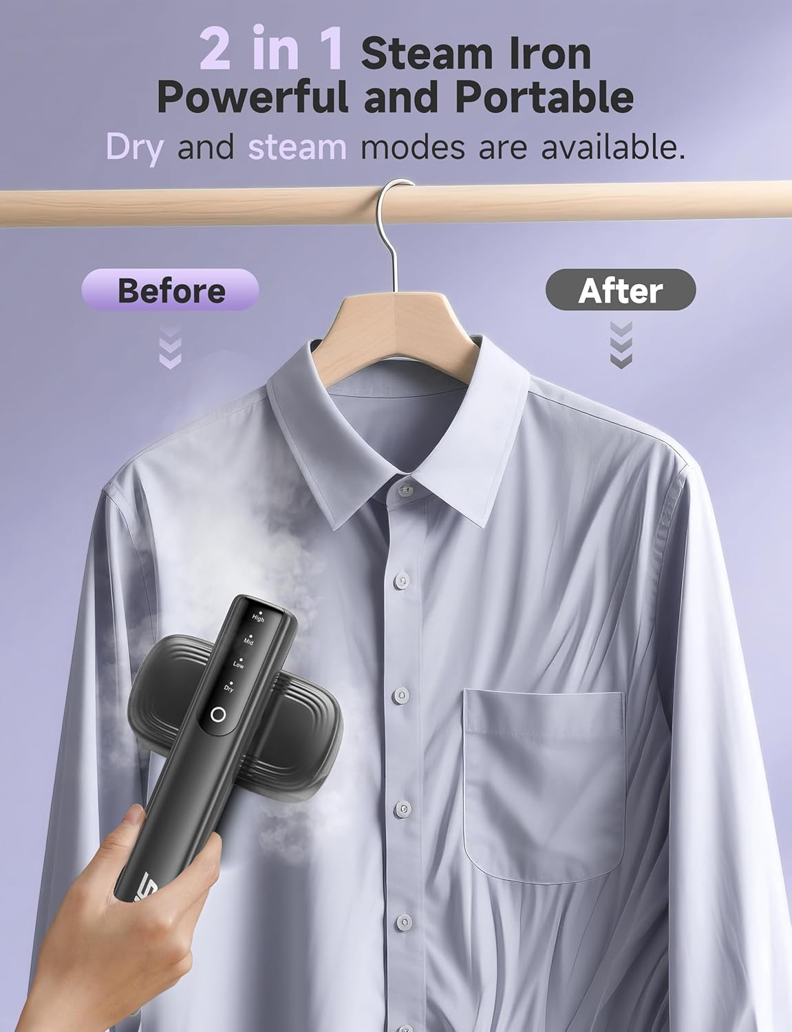 【Water-Leakage-Proof Design】Travel steam has a 100ml large-capacity water tank, which allows long-term ironing without frequent water addition, bringing great convenience. The water pump uses steam to pump water without leakage, saying goodbye to the leakage problem of traditional irons. It has stable performance and ensures long-term worry-free use.