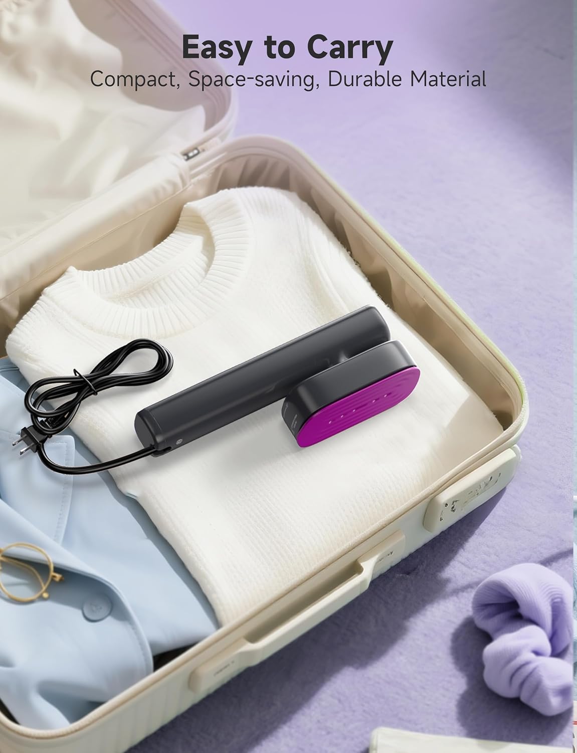 【Ultra-Portable for Travel】Weighing only 1.6 pounds and measuring 10.23 inches x 3.9 inches, this garment steamer is lightweight and portable, making it an ideal practical and stylish travel gift for everyday use, business trips, and students. The package includes: main steamer unit, water tank, heat-insulated base, and user manual.(Note: Use in Europe or other 220-240V regions may cause a short circuit) .