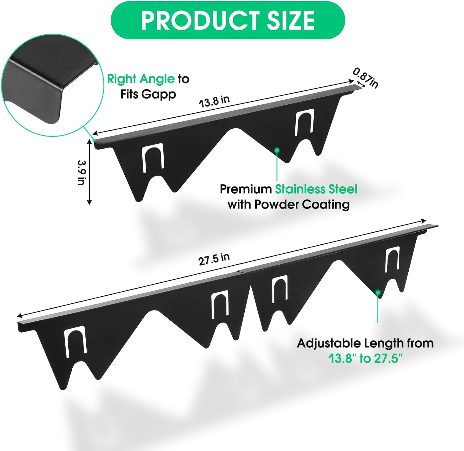 Adjustable Length: Stove Gap Covers Adjustable lengths range from 13.8 inch to 27.5 inch. Stove gap covers are suitable for gaps between 0.87 inch. The stove guard effectively reduces the cleaning frequency of gaps.