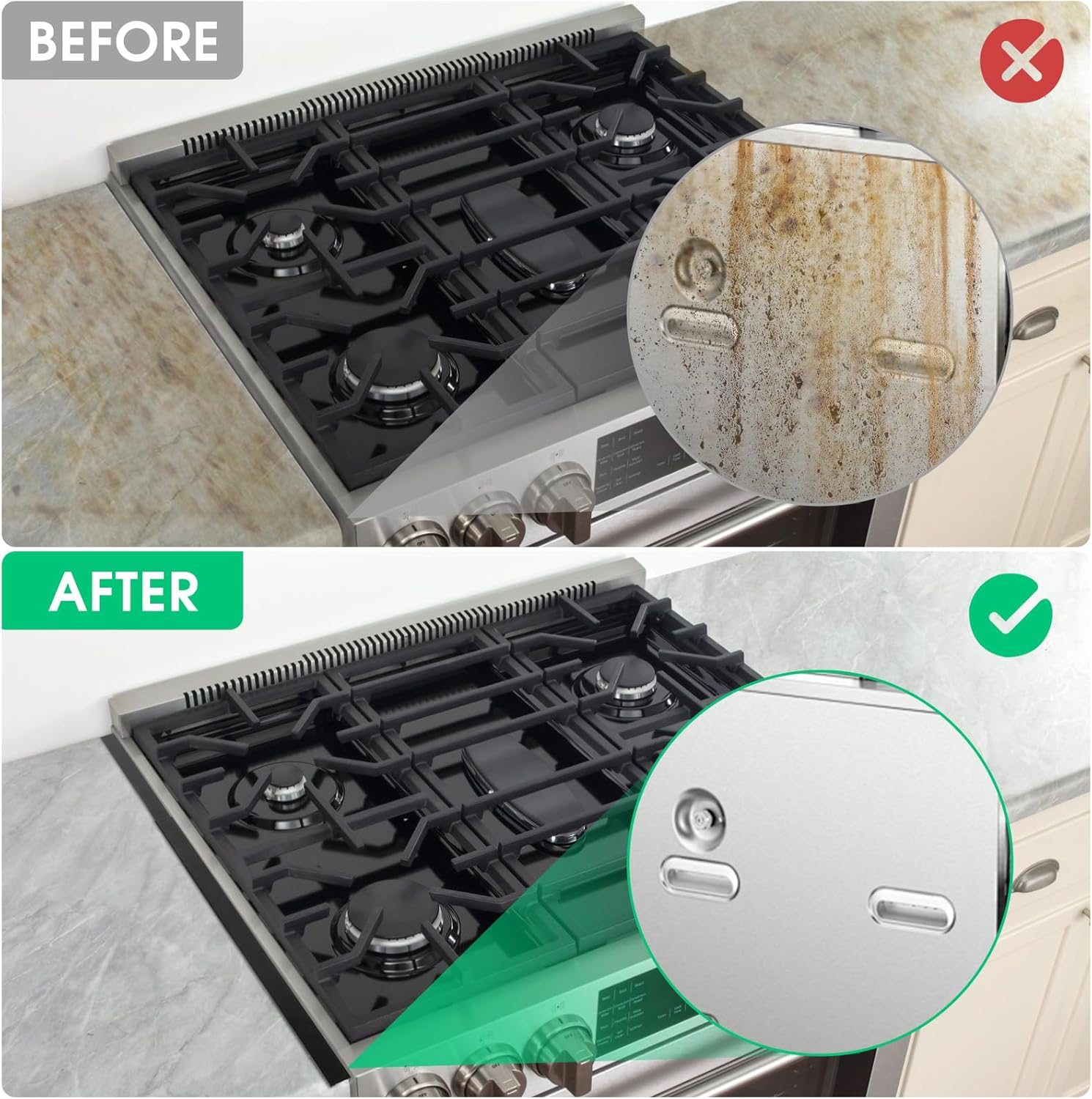 Premium Quality Covers: The Stove Gap Filler for gas stoves is made of premiun stainless steel, won’t burn, melt, deform, or rust, easy to clean just with a wipe cloth. Our stove gap covers are heat-resistant, not sharp, and built to last through daily wear and tear.