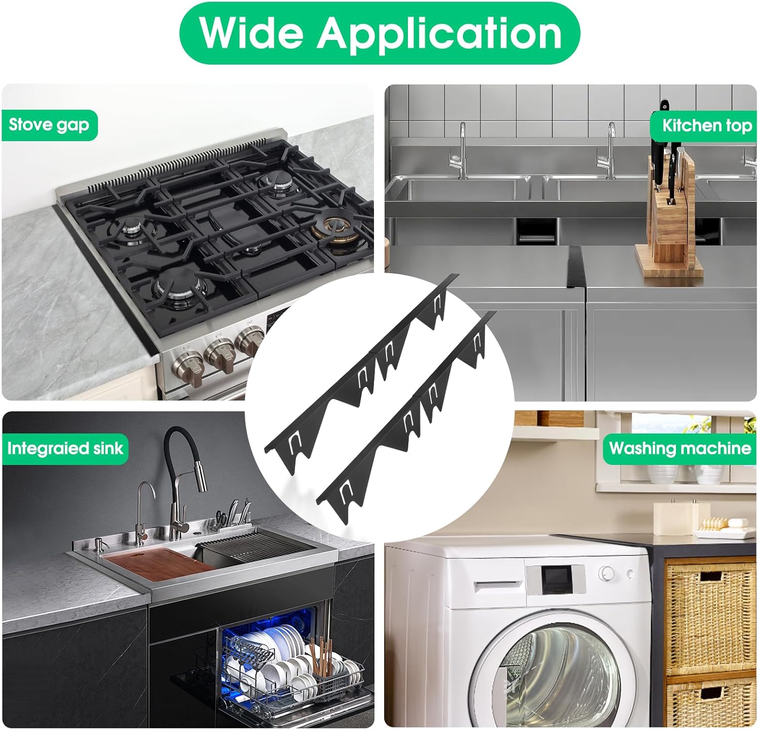 Easy Tool Easy to install: The installation process is extremely simplified. Simply adjust the length,and firmly insert them into the gap, oven gap filler stay securely in place without shifting and are easy to remove.
