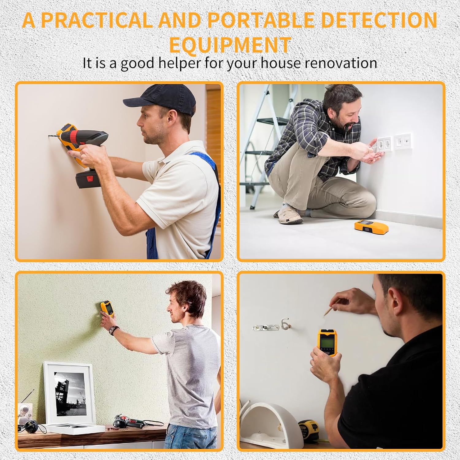 APPLICATION SCENARIO: The wall detector can detect metal, wood beams and live cables concealed in walls, ceilings and floors(the walls, ceilings and floors are conventional concrete, tiles, boards, etc.)