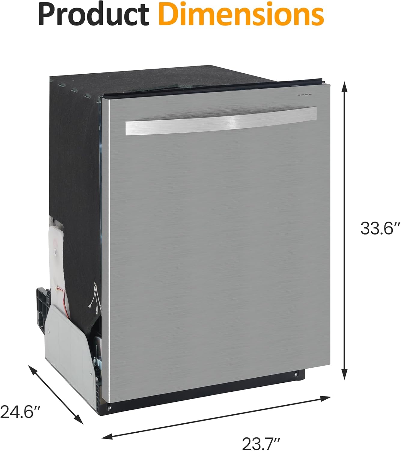 Large Capacity & Flexible Storage – This 24 inch dishwasher fits 14–16 standard place settings. Adjustable and removable racks plus a cutlery basket easily hold pots, pans, and oversized dishes. Ideal built-in dishwasher for kitchens, apartments, or families needing high-capacity dish washer machines.