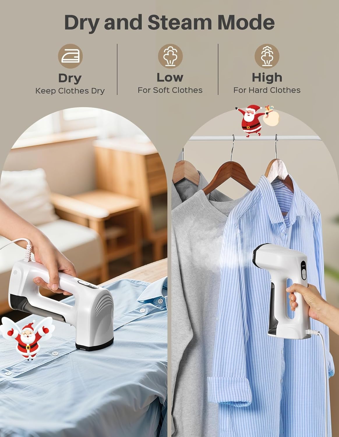 Master Every Fabric with 3 Intelligent Modes: Take the guesswork out of garment care. The clear LED display puts you in command with three specialized settings: Dry Iron for sharp creases and shaping collars without moisture, Low Steam for delicate silks and synthetics, and High Steam for heavy-duty fabrics like denim and linen. This garment steamer is your all-in-one tool for everything in your closet, ensuring perfect results every time.