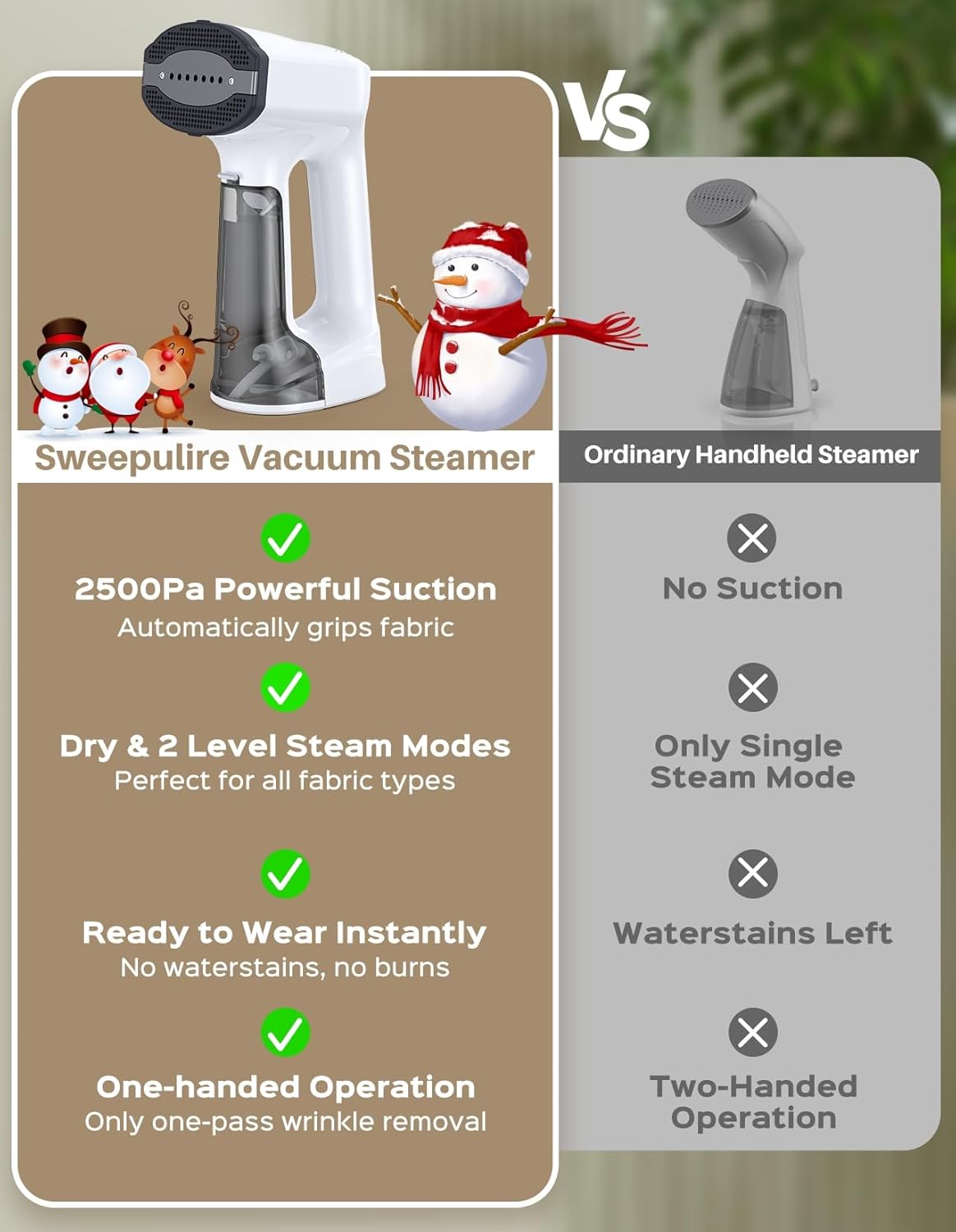 Ready-to-Wear in Minutes, Zero Watermarks: Say goodbye to unsightly water spots and waiting for clothes to dry. Our ultra-fine steam technology and powerful vacuum steamer suction work in tandem to instantly evaporate moisture, leaving fabrics perfectly dry and ready to wear immediately. Enjoy flawless, professional-looking garments without any of the mess or delay of traditional clothes steamers or irons.