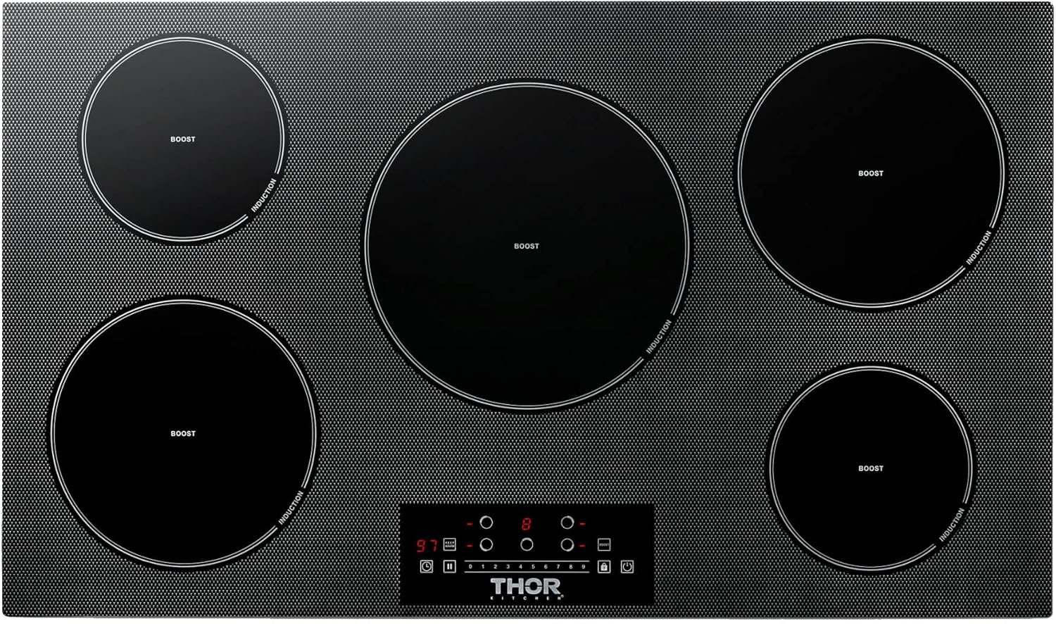 THOR Kitchen offers the power and performance of a premium professional appliance at a practical price. Sleek, powerful and precise. Induction cooking technology combines the temperature responsiveness of a gas cooktop with the fast performance of an electric cooktop. Also, depending on your needs, induction is inherently more energy-efficient and features faster heat-up times compared to gas or electric cooktops. THOR Kitchen’s 36 Inch Built-In Induction Cooktop features five heating elements, nine power levels, touch controls and an independent boost and timer. These induction cooktops are sleek in design and offer quick, precise and even cooking results.