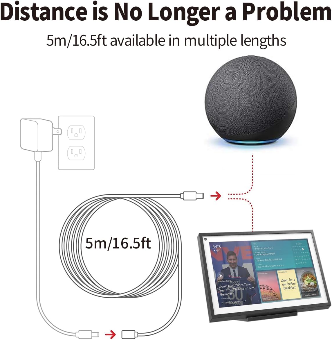 ENHANCED POWER DELIVERY: With a robust 20AWG wire gauge, this cable can deliver up to 30W of power, ensuring a steady and reliable energy supply for your Alexa Show. Say goodbye to power interruptions during crucial moments.