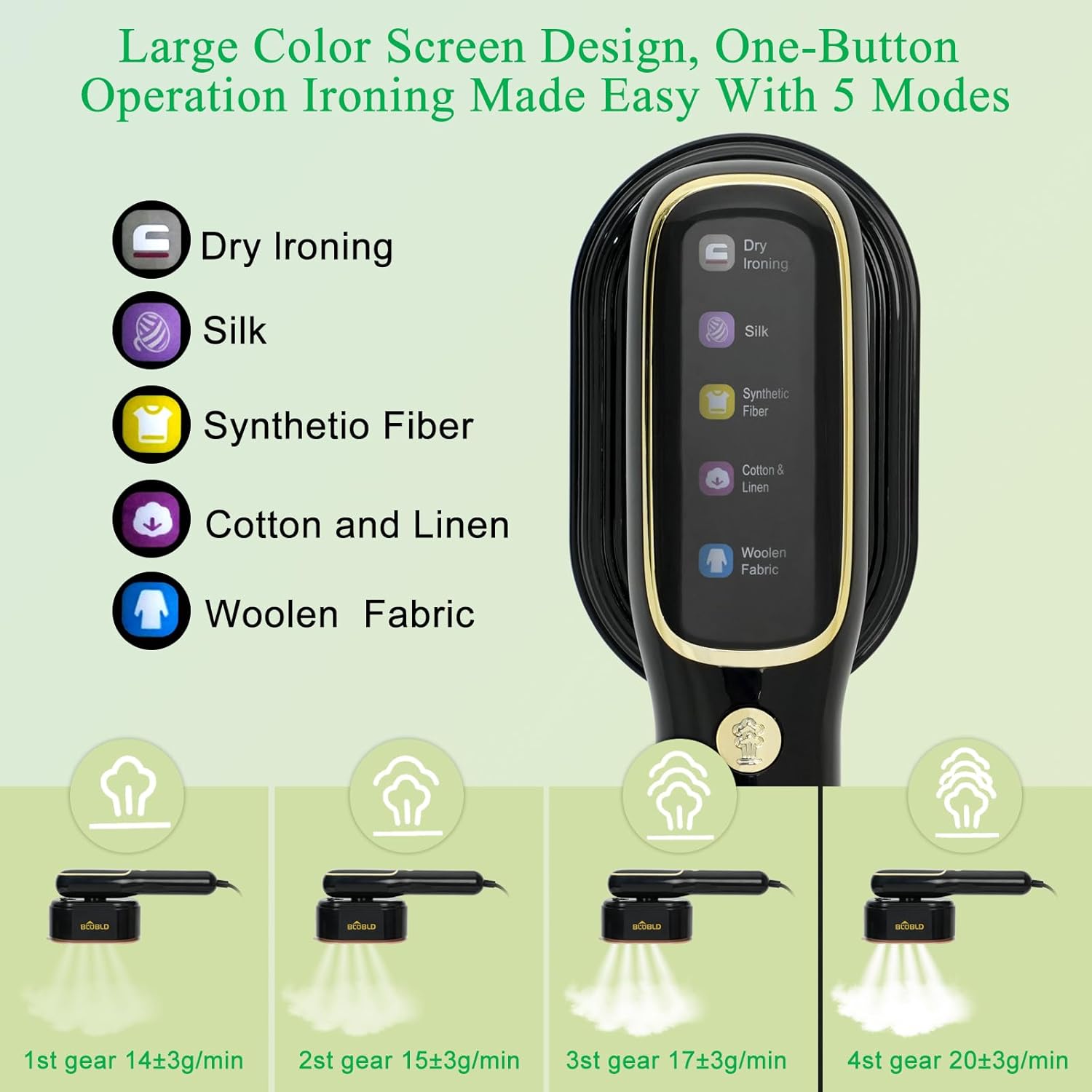 Versatile & Adjustable – Features 5 adjustable settings (1 dry ironing + 4 steam levels) to safely handle all fabrics, including delicate silk, wool, cotton, and synthetics. The steam output ranges between 14 and 20 grams per minute. Removes wrinkles easily due to washing, drying, tumble drying, folding and squeezing. Protect your garments with the appropriate wrinkle release mode.