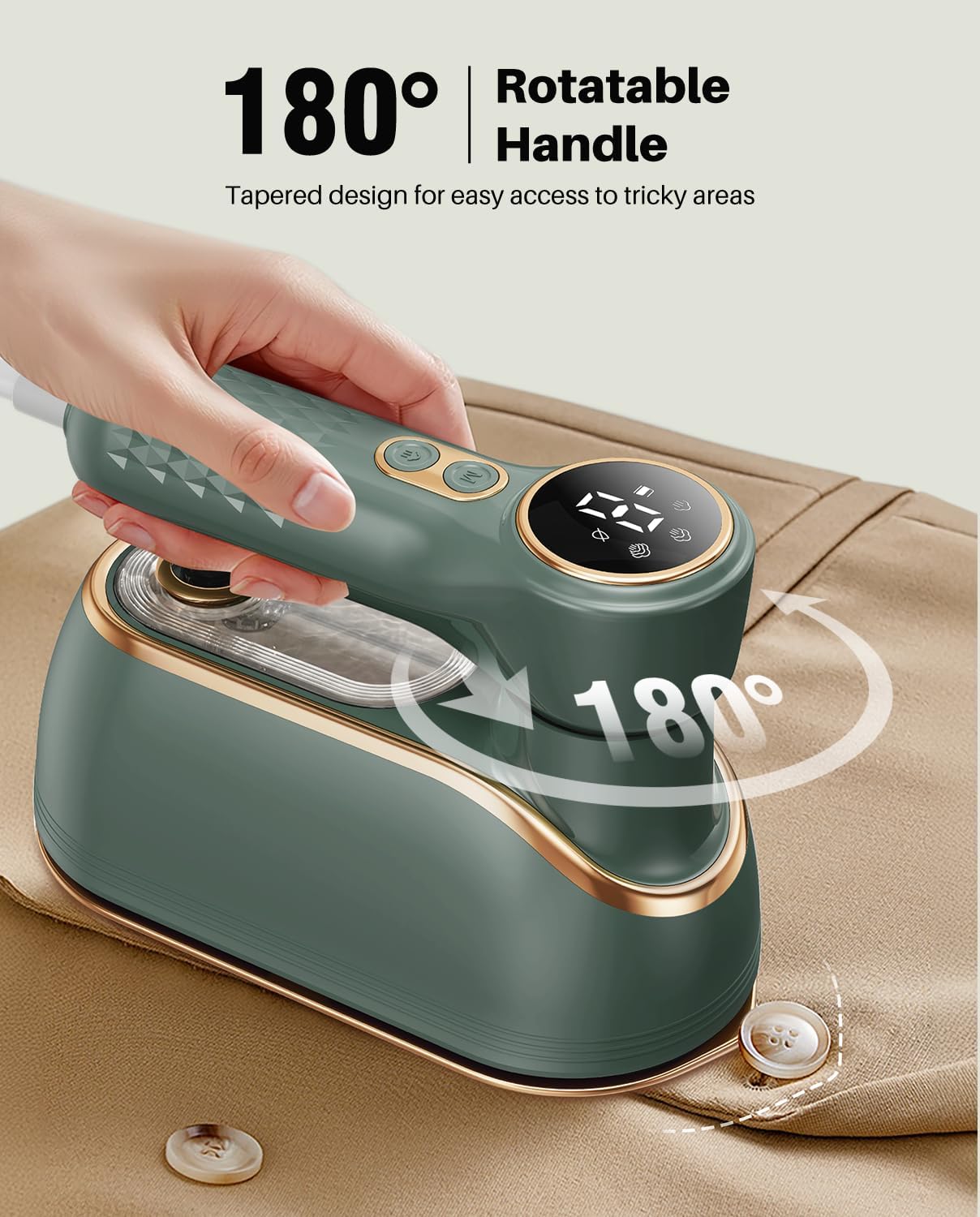 Multi-angle 180-Degree Rotation: The clothes steamer’s handle rotates 180° and comes with a 1.8-meter cord, so you can adjust the angle and have enough room to maneuver the product to iron your clothes that puts less strain on your hands. Its tapered front ensures 360-degree ironing, allowing you to easily get around buttons, collars and other tricky areas.