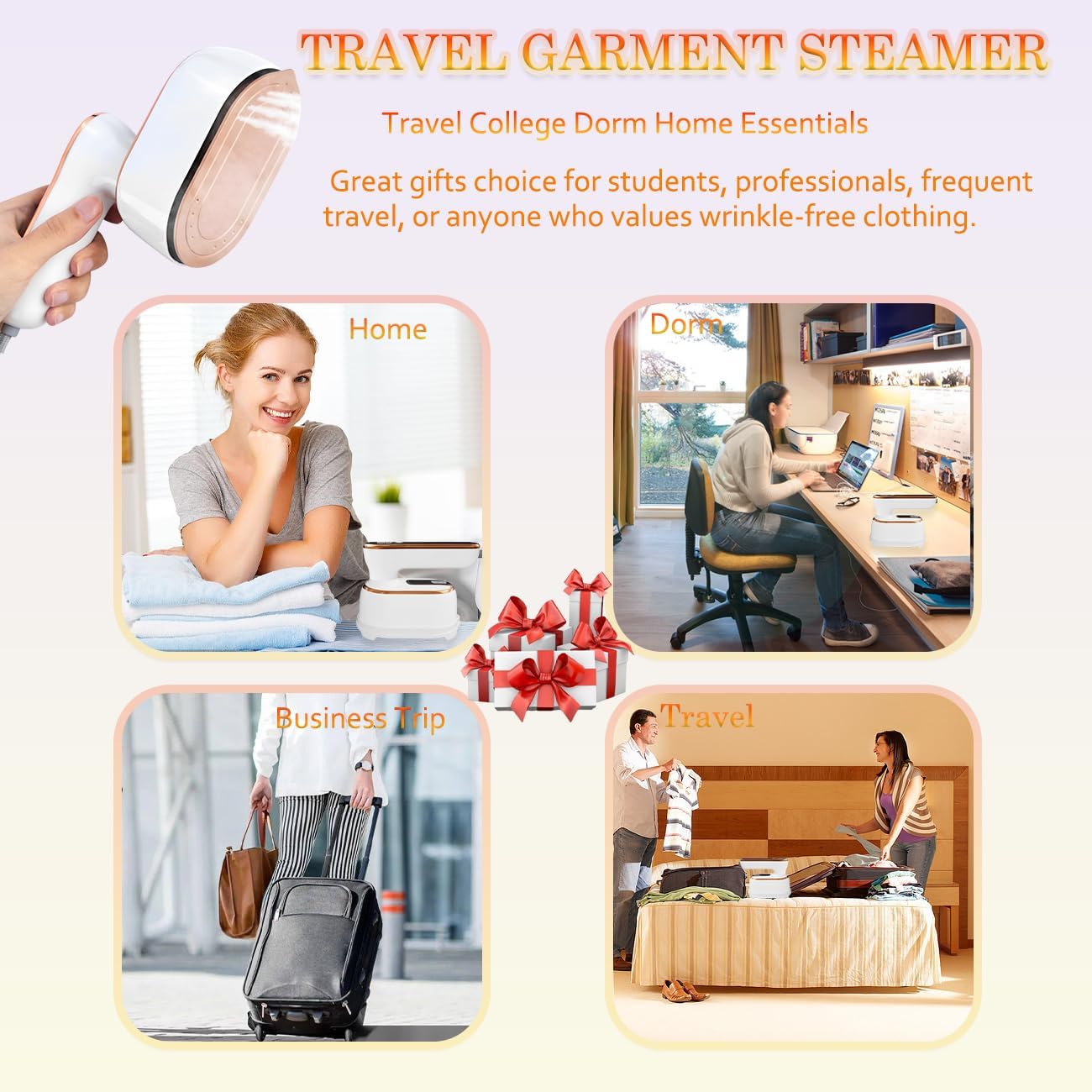 Travel College Dorm Room Essentials: Clothes steamer iron is an essential item that can bring convenience to your lives. When it comes to travel, a steamer iron for clothes can help you keep clothes neat and tidy. Steam iron for clothes is apartment essentials, home essentials, college dorm room essentials for girls boys. It is great choice for students, professionals, frequent travel must have, or anyone who values wrinkle-free clothing. Nice gifts for her or him on Christmas, Valentine’s Day