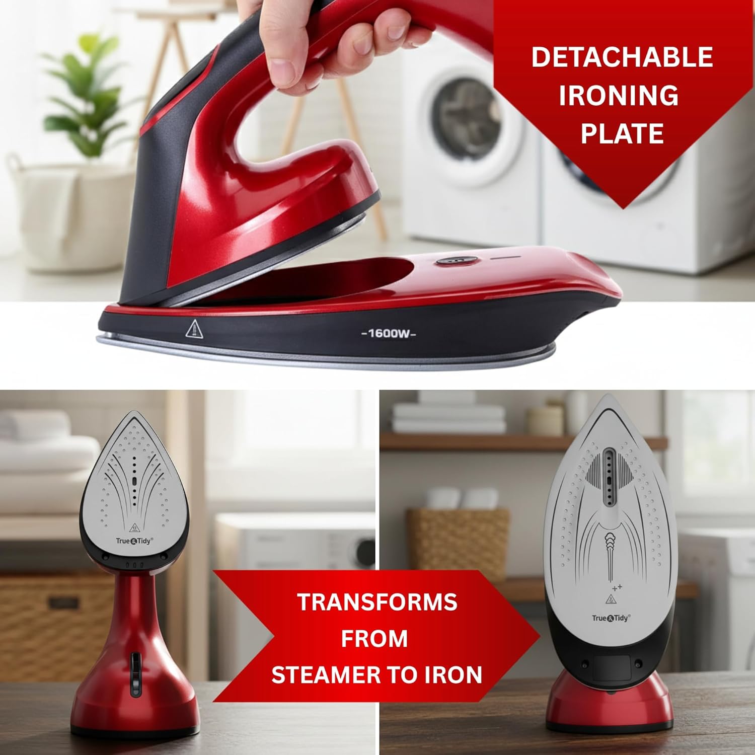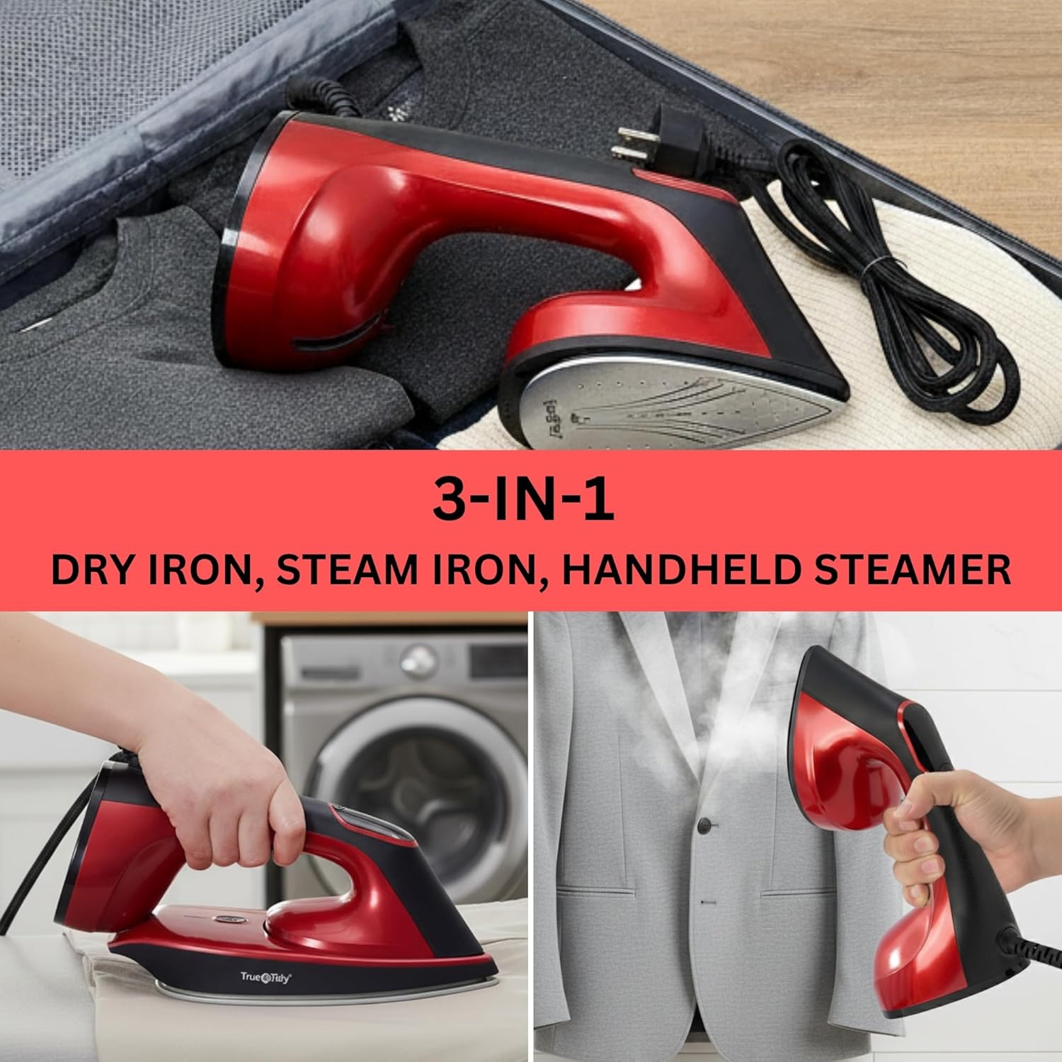 2-in-1 DESIGN FOR ULTIMATE VERSATILITY: Combines the full power of a traditional iron with the convenience of a handheld steamer — perfect for quick touch-ups or full ironing sessions.