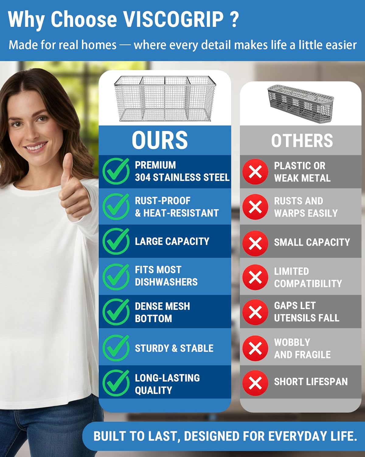 【Universal Fit & Easy to Use】This dishwasher silverware basket replacement is designed with universal dimensions to fit in the bottom rack of most standard dishwasher models. It serves as a sturdy, reliable substitute for broken or missing original baskets. It’s the perfect, hassle-free upgrade.