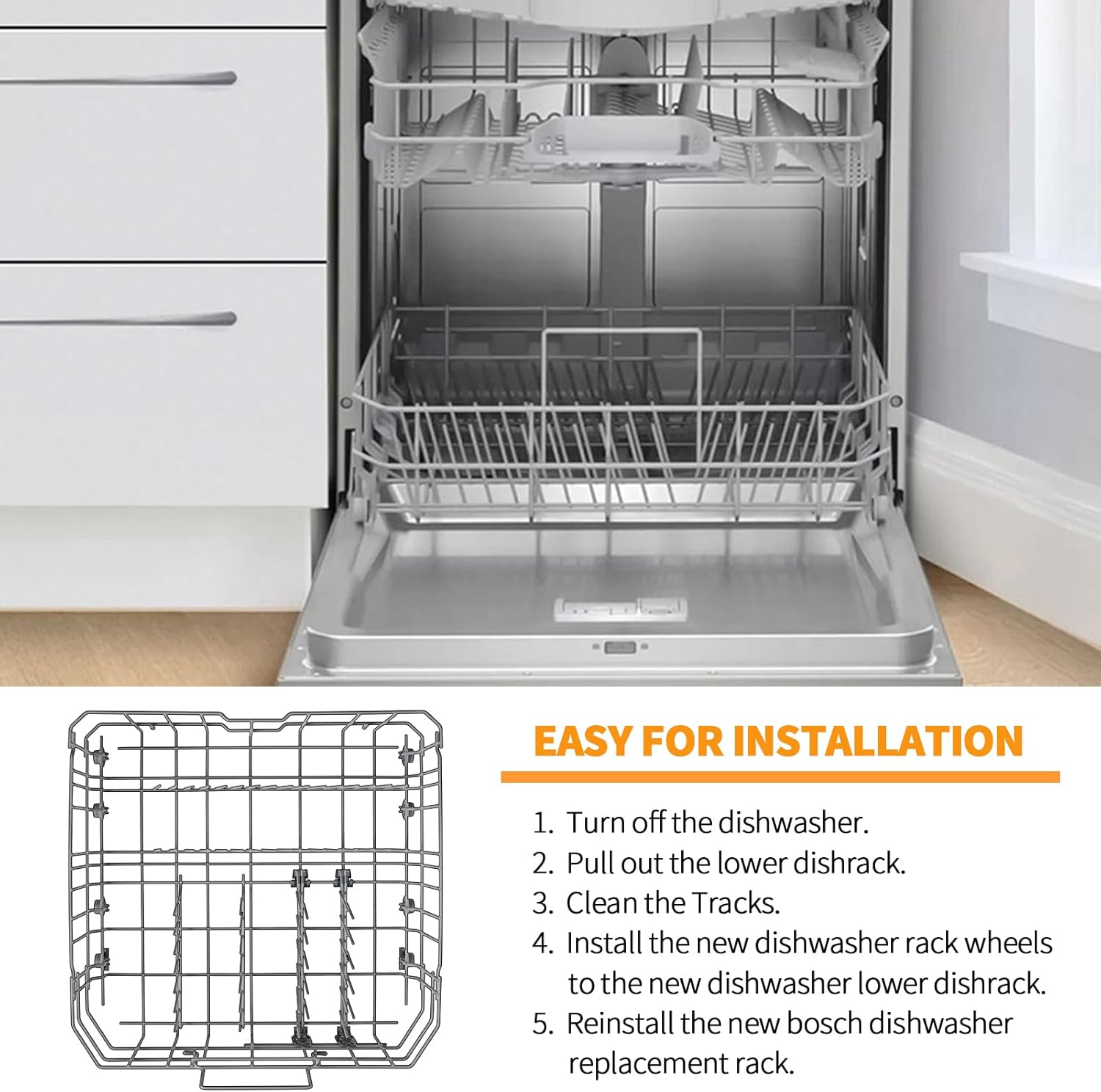【COMPATIBLE WITH BOSCH DISHWASHER RACK】 20000533, 20007189, 00779032, 00689429, 00689997, 20000532, 20000049, 20004340, 00770024, 00770085, 00770689, 00770730, 00775315, 00775824, 00775825, 00775826, 689429, 689997, 770024, 770085, 770689, 770730, 775315, 775824, 775825, 775826, 779032 and more bosch dishwasher bottom rack. Fits bosch 500 series dishwasher rack, bosch 800 series dishwasher rack, bosch 300 series dishwasher rack,bosch dishwashers built in 24 inch white/black dishrack