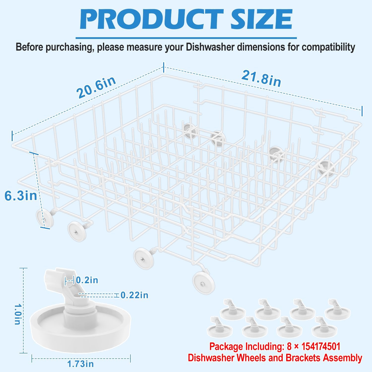 【154432602 Dishwasher Lower Dishrack Assembly Part Numbers】 This Dishwasher Parts Lower Rack measures approximately 21.8 x 20.6 x 6.3 inches.808602302 dishwasher racks fits for Frigidaire Dishwasher/Crosley Dishwasher/Gibson Dishwasher/Tappan Dishwasher/Kenmore Dishwasher/Multiflex Dishwasher/White-Westinghouse Dishwasher. 808602302 frigidaire dishwasher rack Replace 5304535252 808602303 AP7218623 808602302 154319706 154320904 154319708 154320905 154319604 154224902 154432603 154320903 154432602 154425502 154432601 154207803 154207804 154207905 154207906 154207907 154308304 154308305 154308306 154320901 154320902 154320906 154321001 154321002 EAP17219739 PS17219739 154866702 4981754.