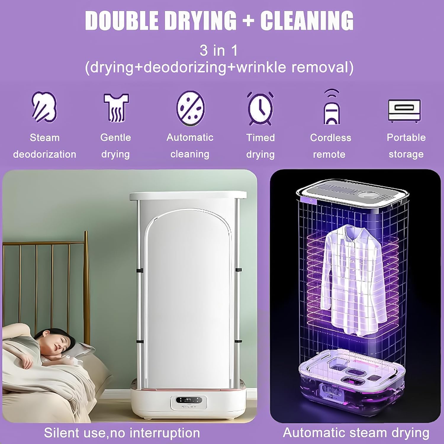 All-in-One Garment Care System: Steam, Refresh & Store:Functioning as a versatile steam closet for clothes, this 2-in-1 system offers both storage and garment care capabilities. With space for multiple items, it utilizes natural steam technology to refresh fabrics, help reduce odors, and maintain clothing appearance. This multifunctional clothes dryer and ironer system provides a practical alternative to frequent professional cleaning for suits, dresses and delicate fabrics.