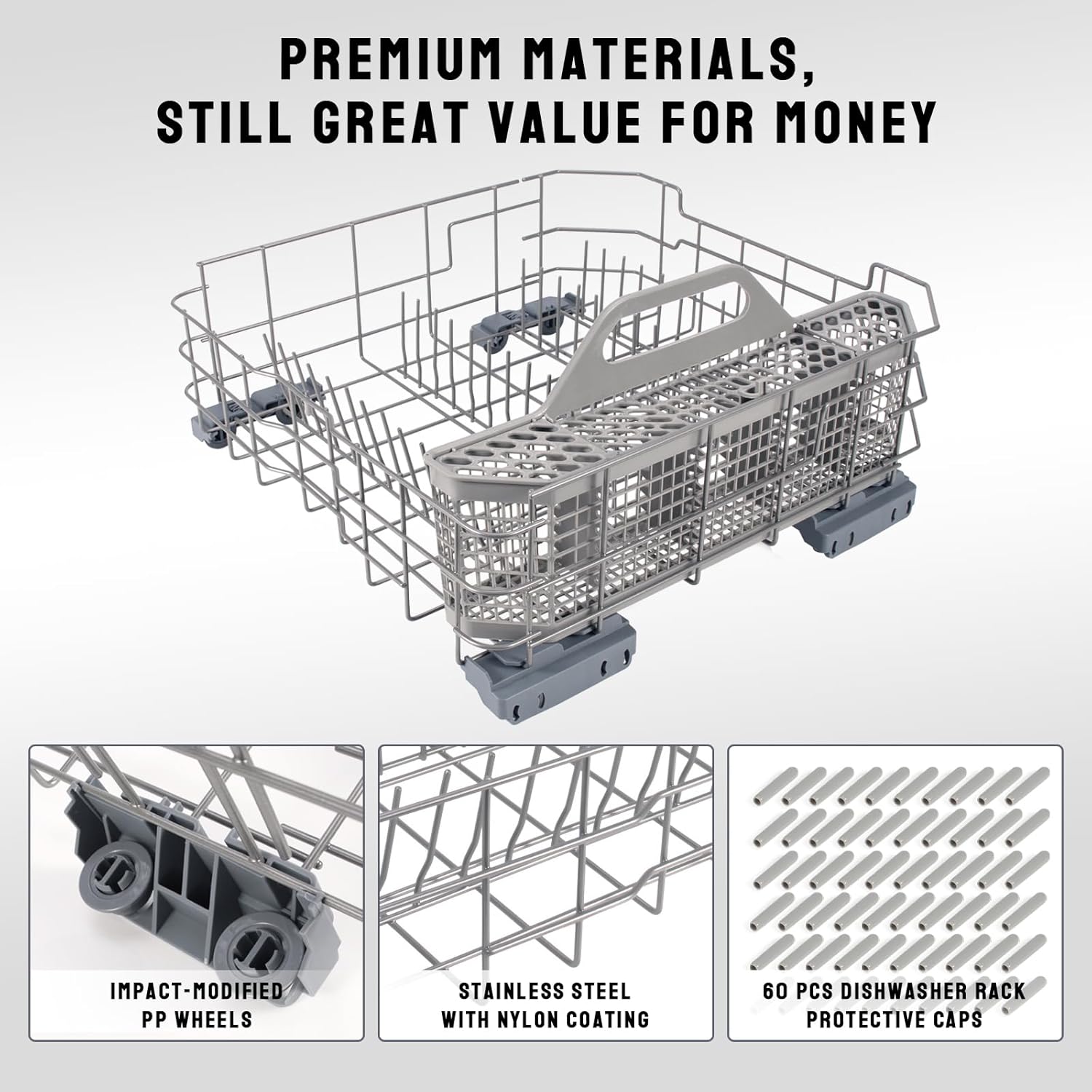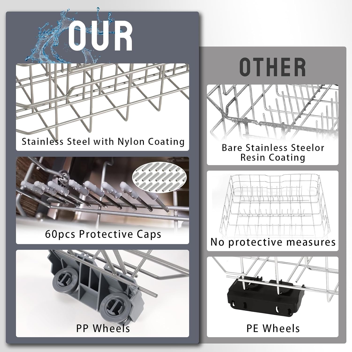 【Dual Protection】Beyond the coating, we’ve added 60 rack tooth caps to reduce noise and protect your dishes, giving you extra peace of mind while using it.