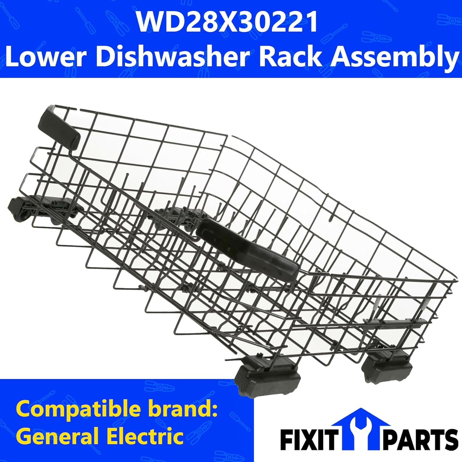 Compatible Fit: WD28X30221 Lower Rack Assembly is designed specifically for select GE dishwasher models, ensuring a perfect fit and easy installation
