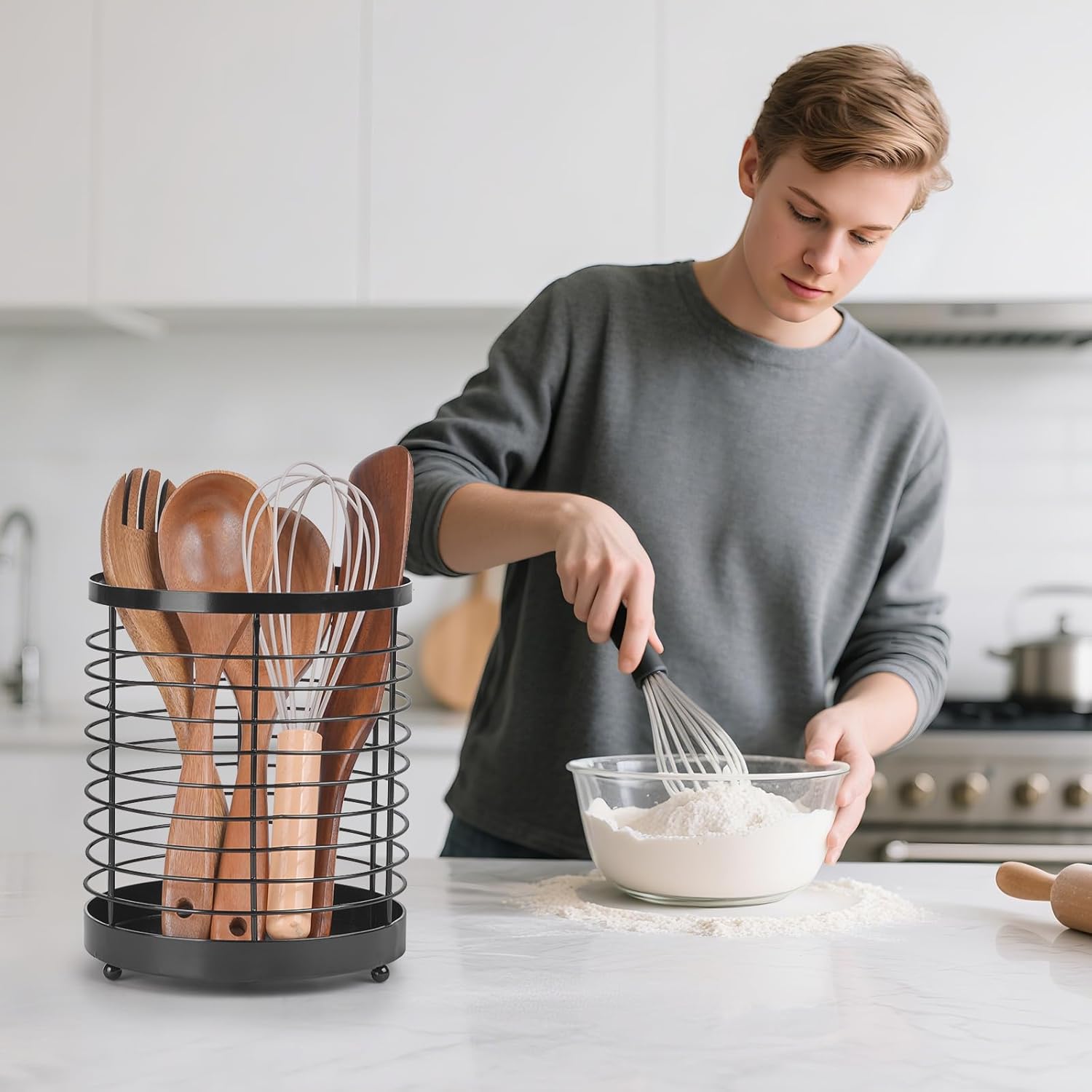 Ideal Choice of Gift: This kitchen utensil organizer is suitable for all those who love life and cooking. The classic black color can be perfectly integrated into various kitchen decoration styles. It is also a thoughtful gift for friends to move into a new home.